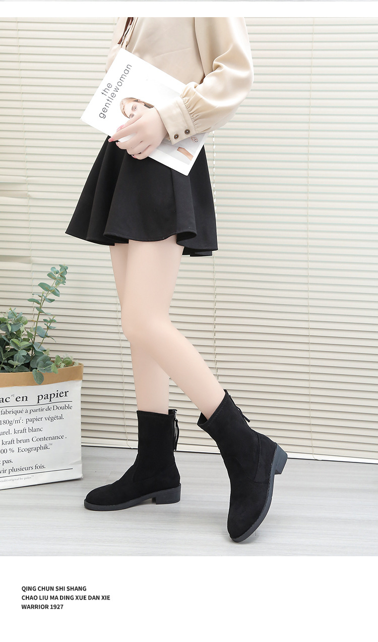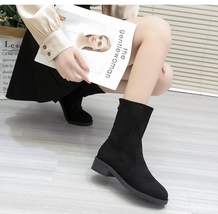 유럽과 미국 플러스 사이즈 블랙 스웨이드 낮은 굽 지퍼 짧은 부츠 2023 새로운 중간 배럴 슬리밍 라운드 토 마틴 부츠 여성용스토어 가기