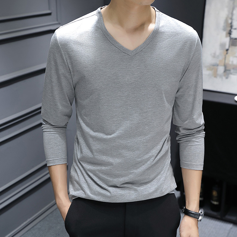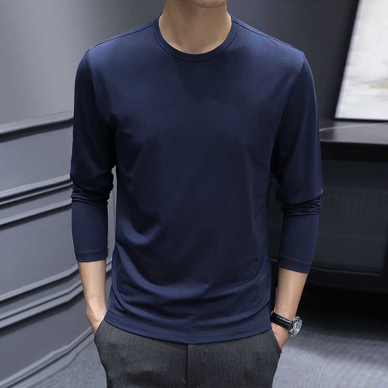 가을과 겨울 라운드 넥 긴 소매 티셔츠 남성용 탑 얇은베이스 셔츠 가을 속옷 홈 슬림핏 만능 속옷