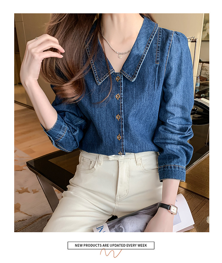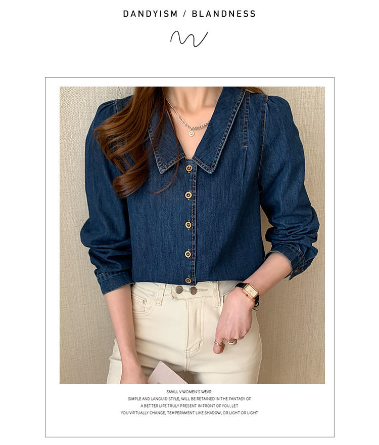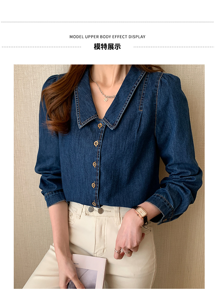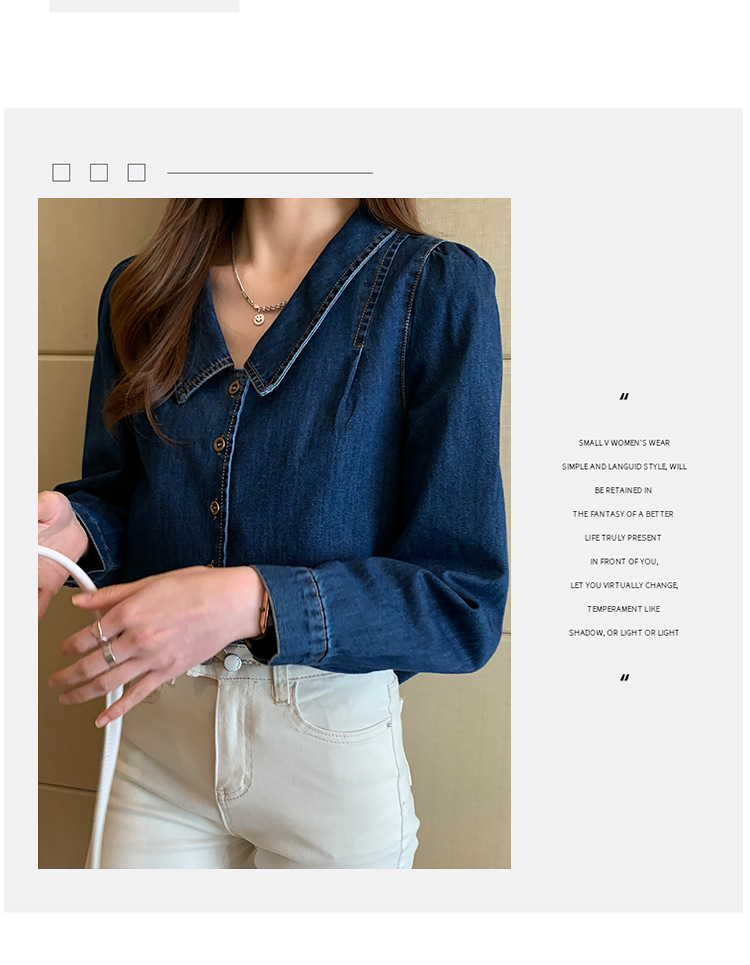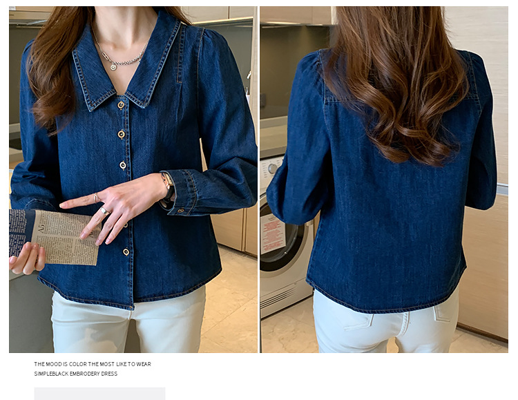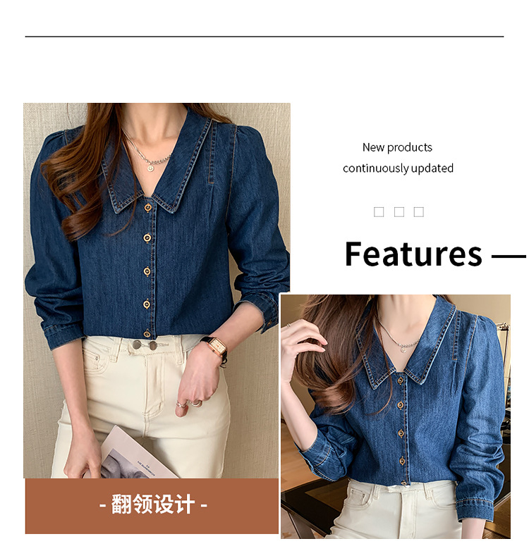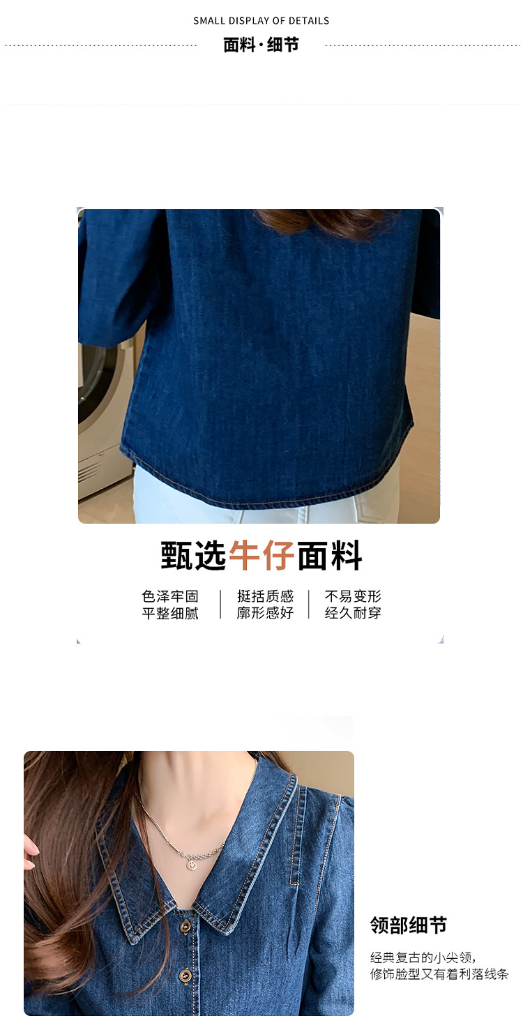 리얼 샷 클래식 복고풍 틈새 데님 셔츠 여성의 디자인 감각 2022 봄과 가을 뾰족한 칼라 긴 소매 느슨한 짧은 셔츠스토어 가기