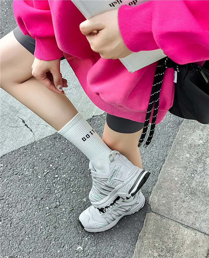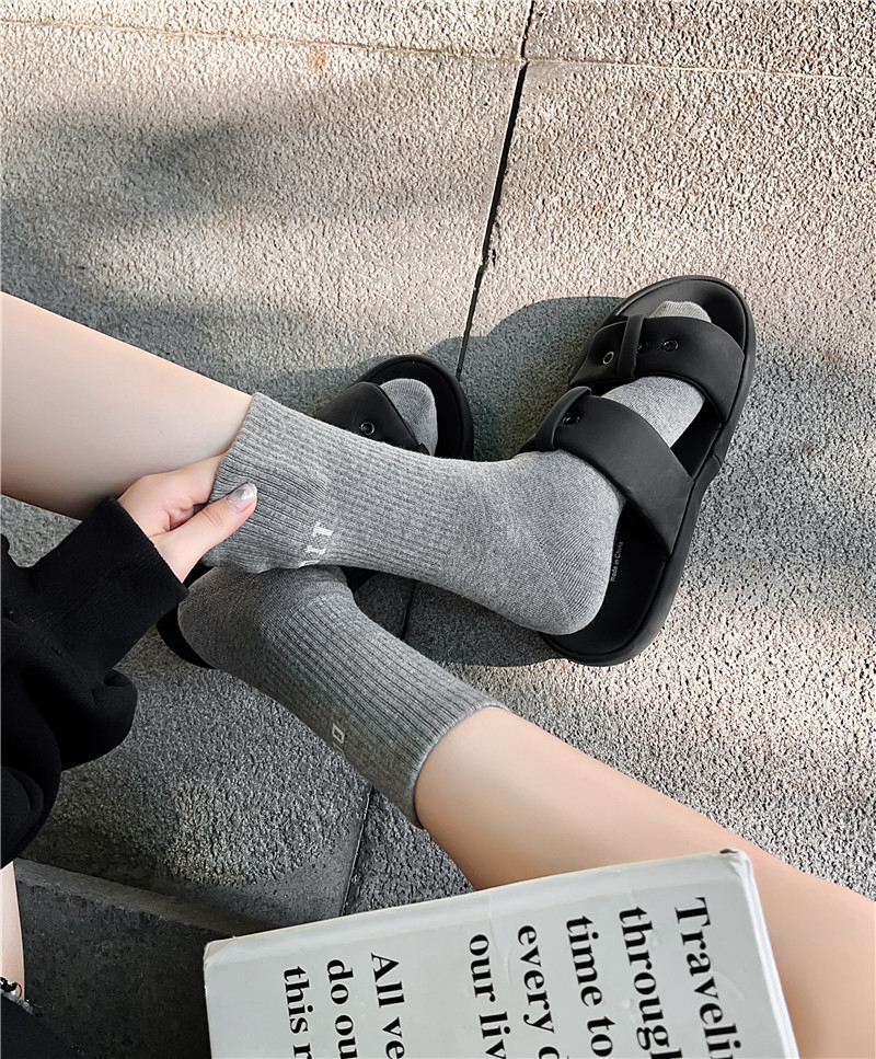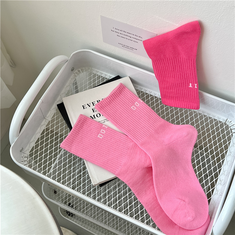 단색 in 트렌디 한 편지 모든 경기 거리 스포츠 스타일 소녀의 중간 튜브 스타킹 스택 도파민 다채로운 양말스토어 가기