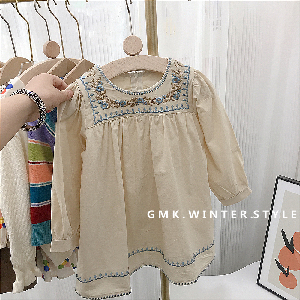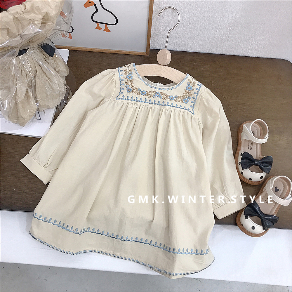 가을 모리 스타일 새로운 어린이 소녀 면 한국 스타일 수 놓은 사각 칼라 긴 소매 원피스 공주 원피스 대외 무역스토어 가기