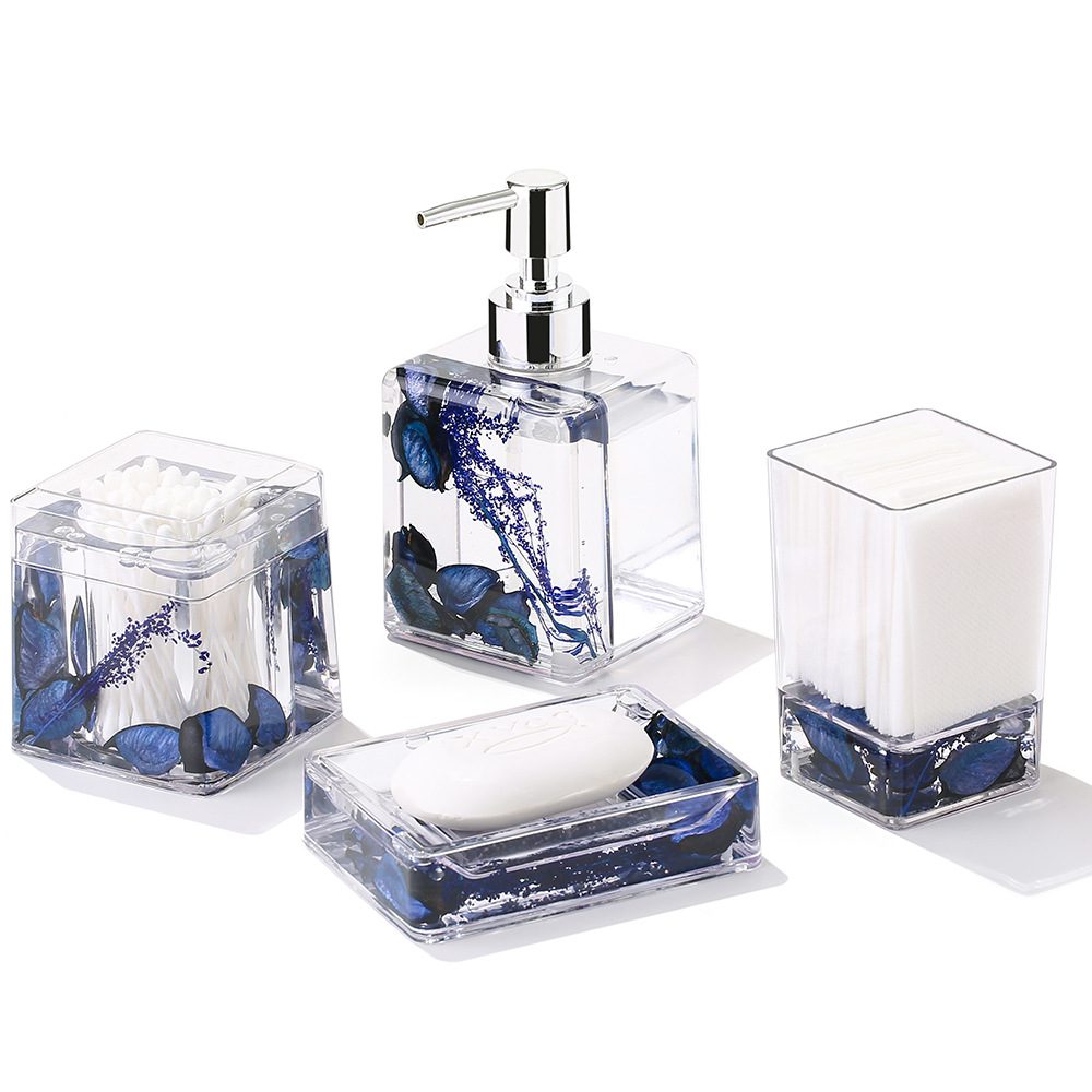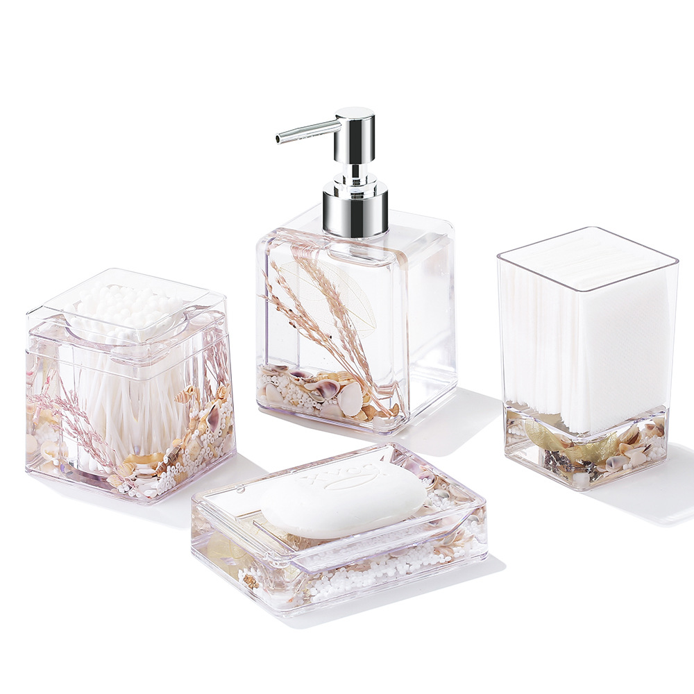 卫浴套装 浴室套件 浴室用品 乳液瓶分装 卫浴4件套 卫生间套装 肥皂盒 棉签盒 洗手液瓶子 亚克力