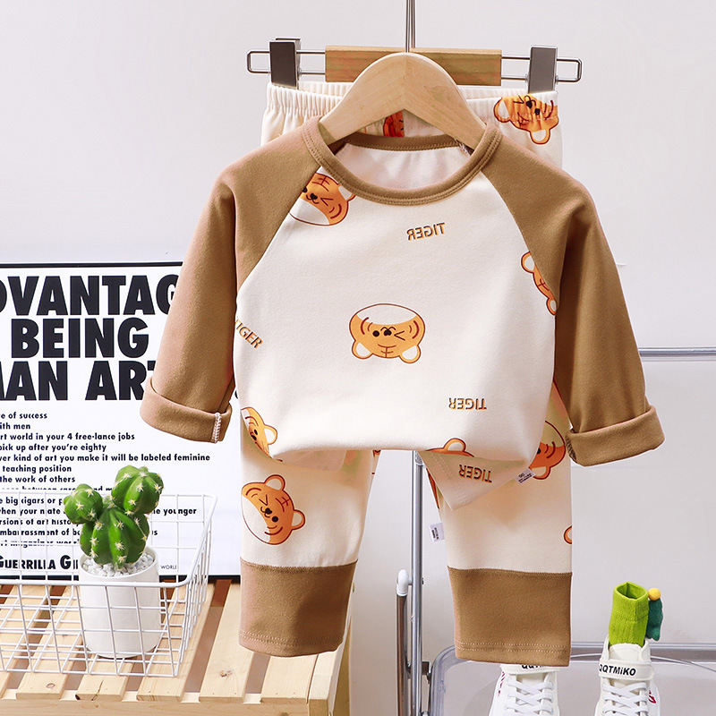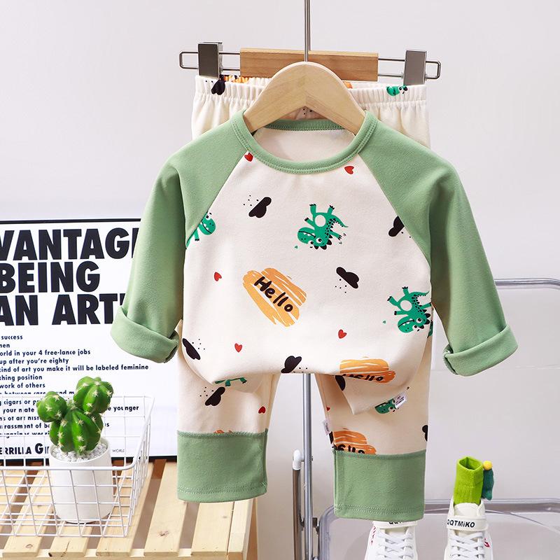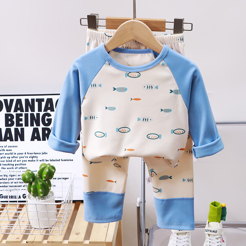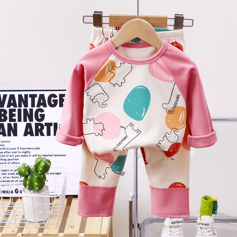 재고 가을과 겨울 새로운 어린이 잠옷 세트 소년과 소녀 인쇄 가정 옷 아기 벨벳 가을 옷 가을 바지