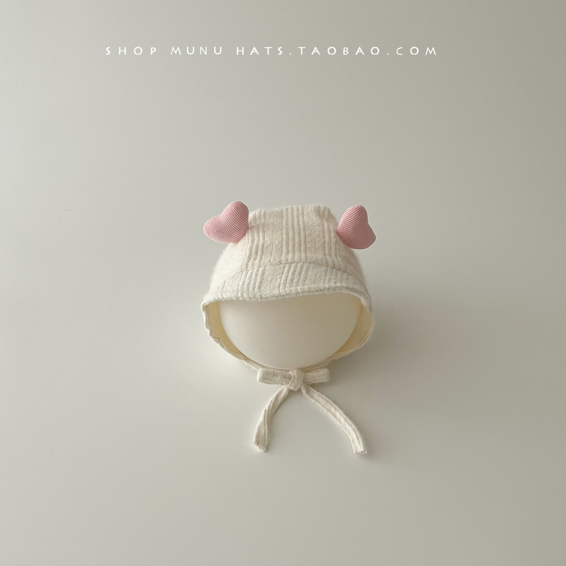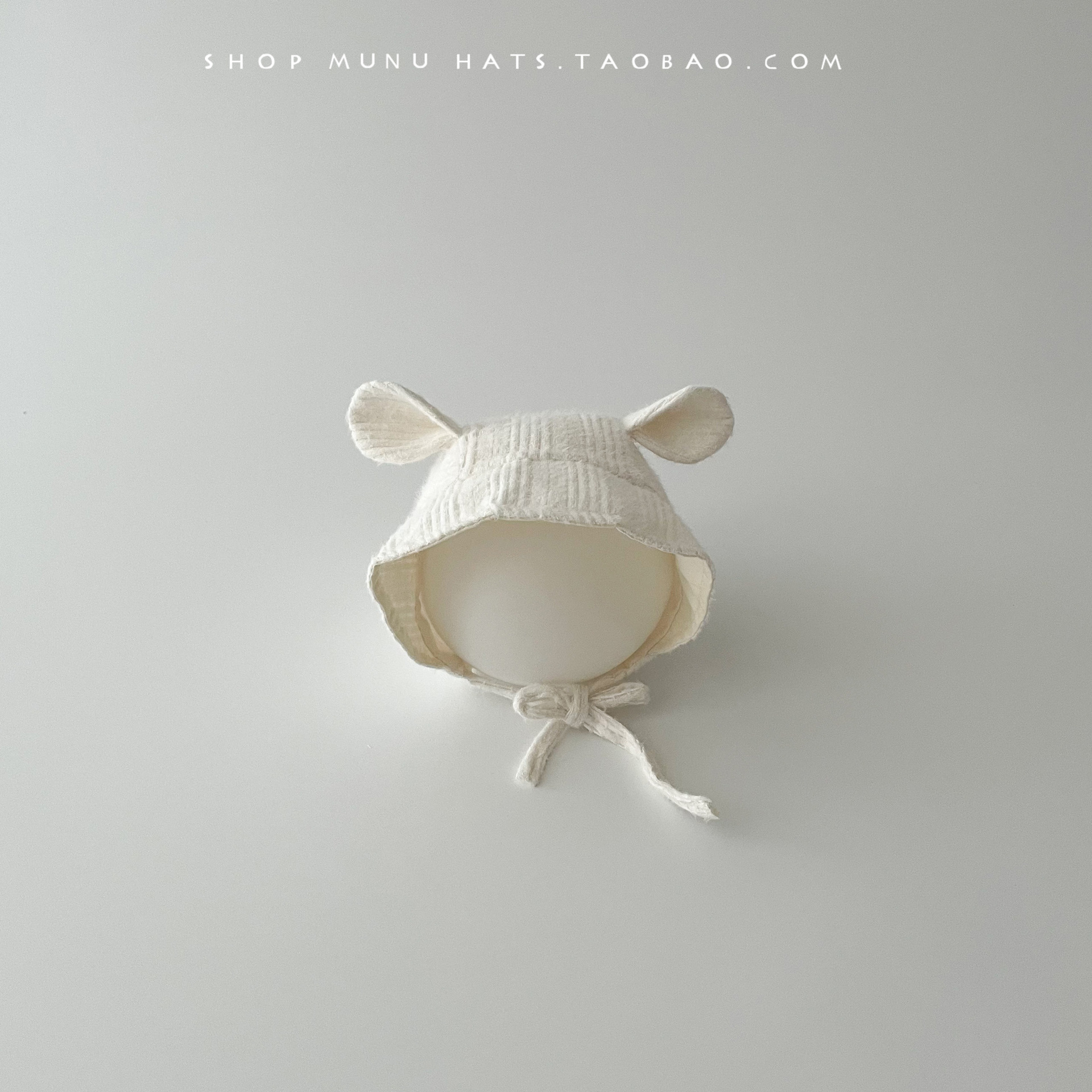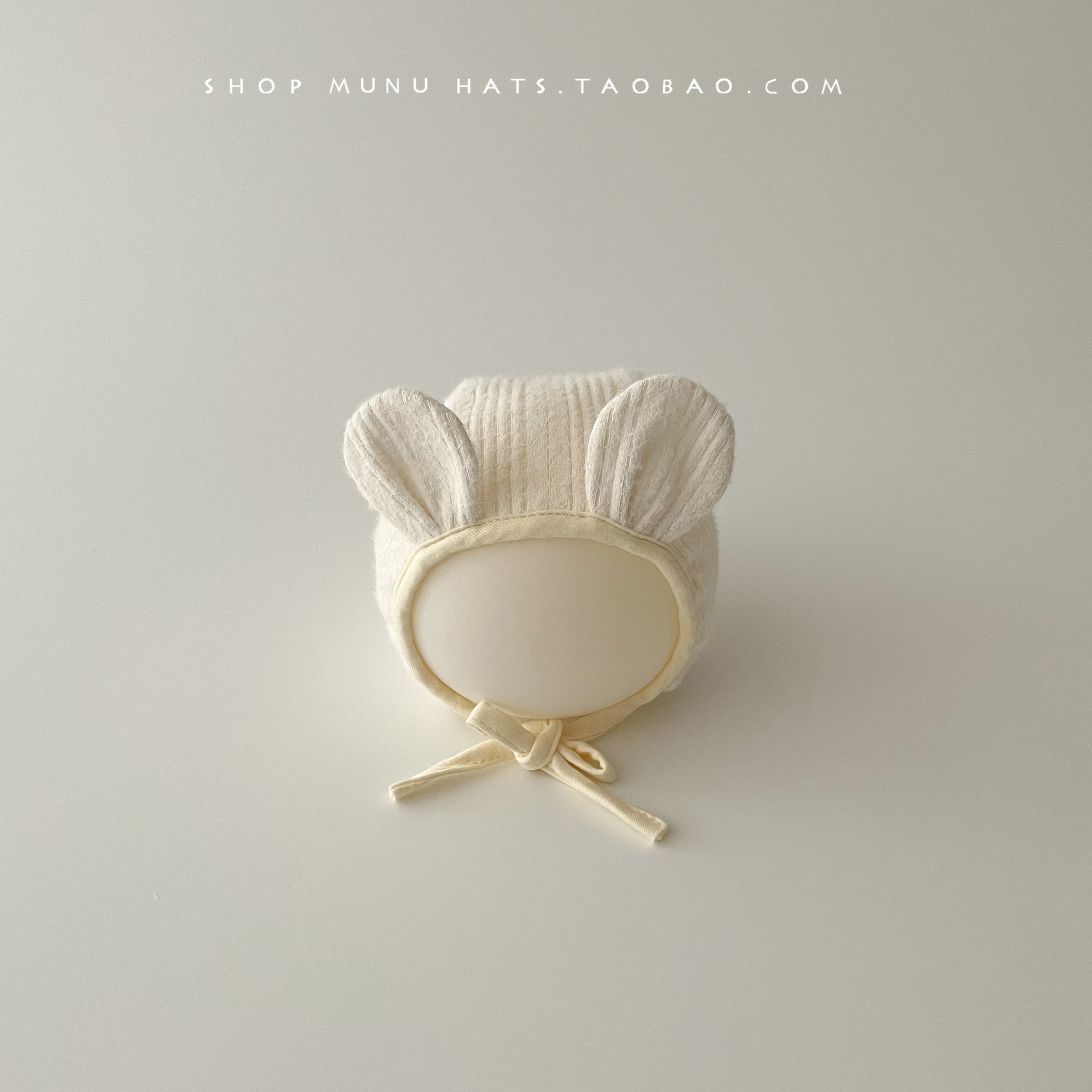 아기 모자 봄과 가을 한국 크림 화이트 레이스 스트랩 모자 아기 귀 보호 모자 신생아 인도 모자 태아 모자스토어 가기