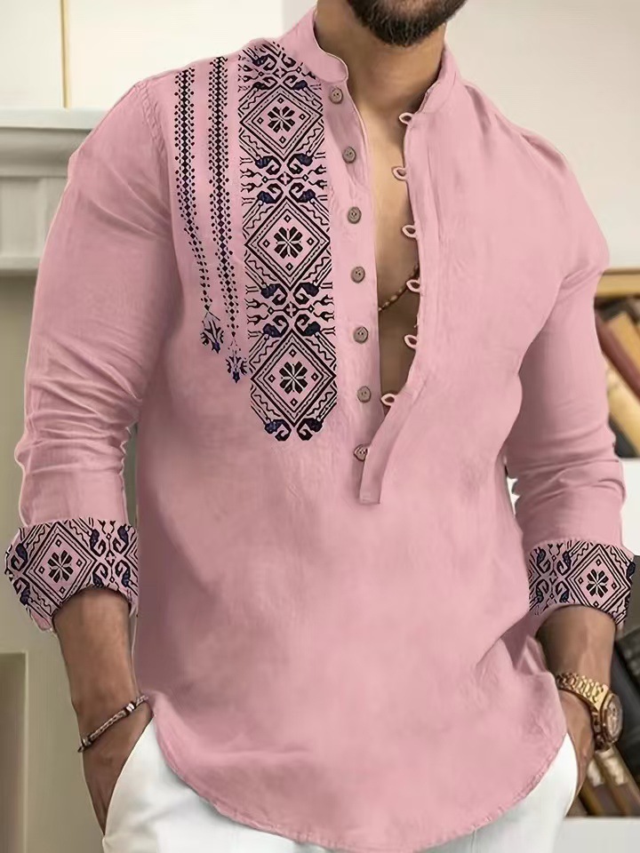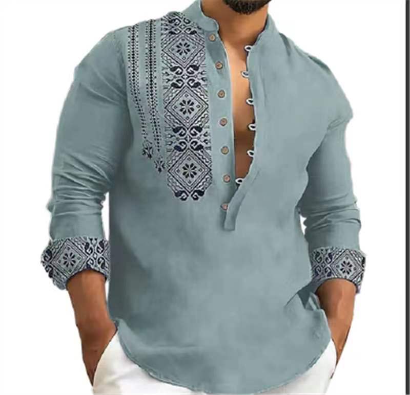 크로스 보더 유럽과 미국 남성 셔츠 패션 여름 새로운 긴 소매 세로 칼라 트렌디 하프 카디건 캐주얼 얇은 셔츠 트렌디