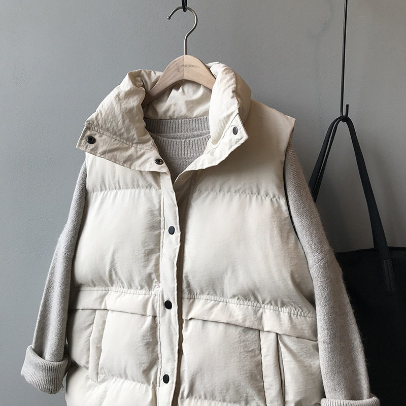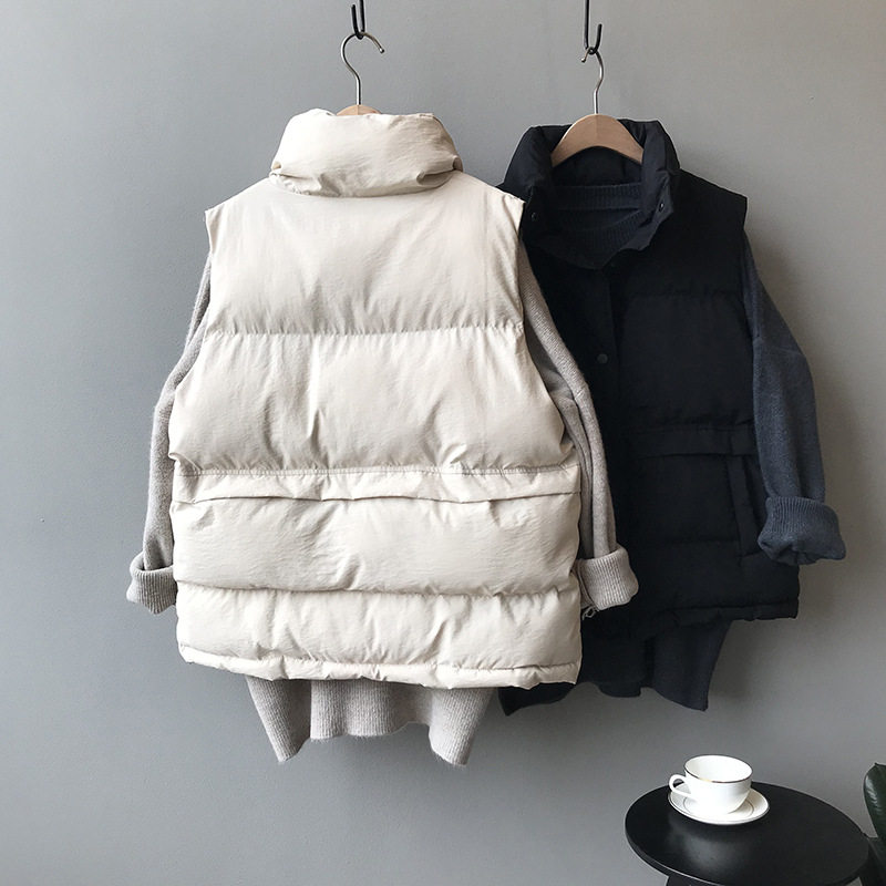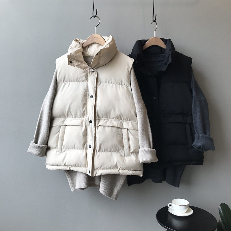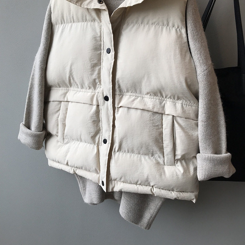 2025 가을 겨울 신상 한국 스타일 루즈핏 숏 다운 코튼 조끼 여성용 다용도 조끼 베이컨 재킷
