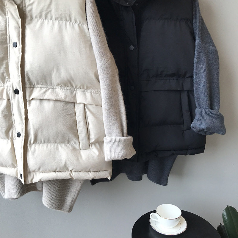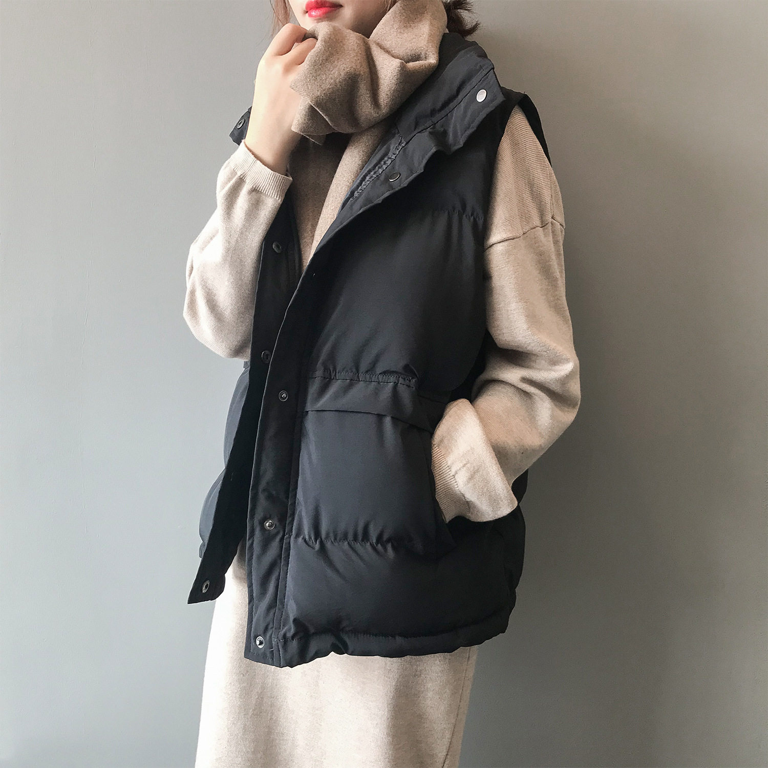 2025 가을 겨울 신상 한국 스타일 루즈핏 숏 다운 코튼 조끼 여성용 다용도 조끼 베이컨 재킷스토어 가기
