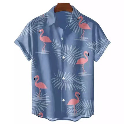 크로스 보더 하와이 비치 플라워 셔츠 남자의 여름 반팔 플라밍고 인쇄 최고 대외 무역 플러스 사이즈 플라워 셔츠스토어 가기