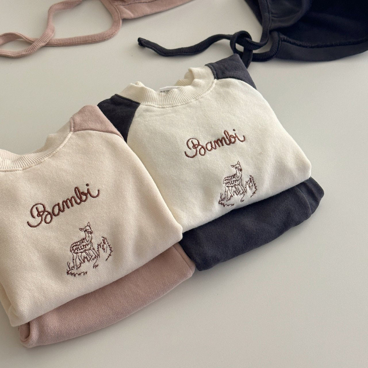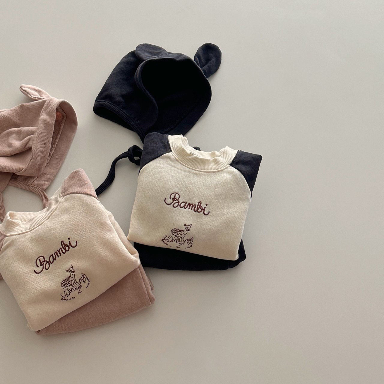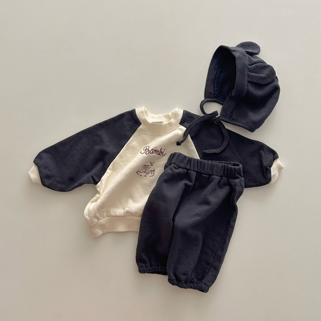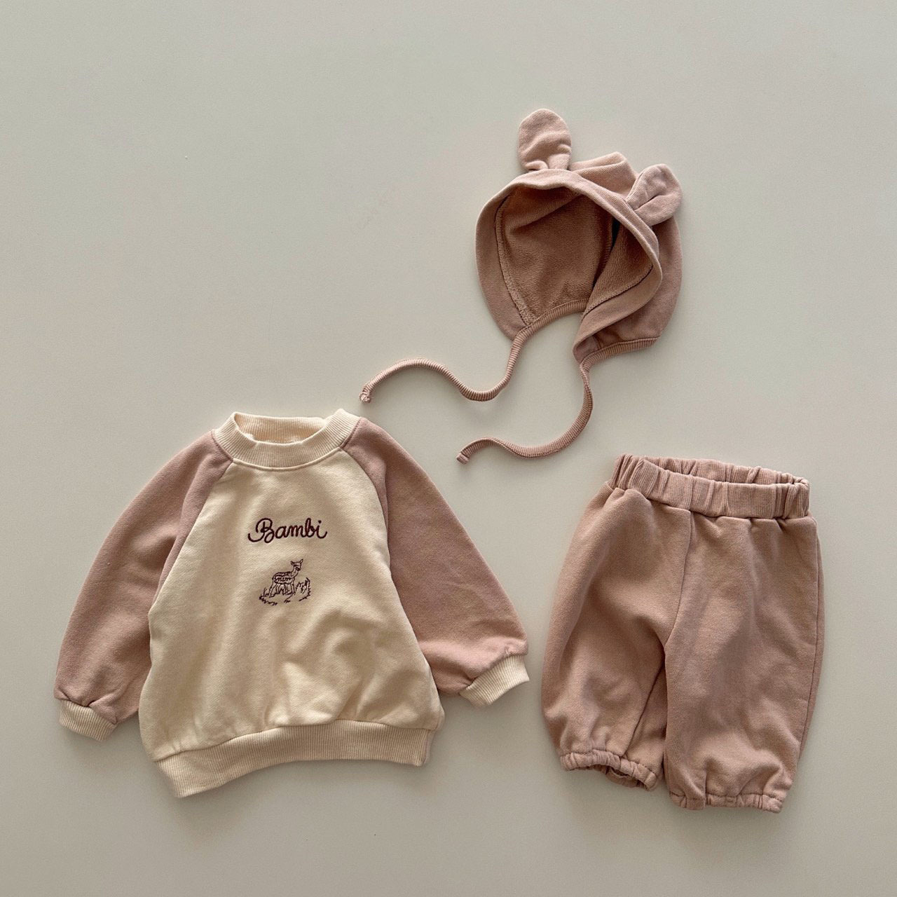 25 봄 새로운 한국 스타일 아기 옷 인 사슴 자수 어린이 3 피스 아기 긴 소매 티셔츠 정장