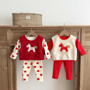 25 봄 새로운 한국 스타일 아기 옷 인 사슴 자수 어린이 3 피스 아기 긴 소매 티셔츠 정장스토어 가기