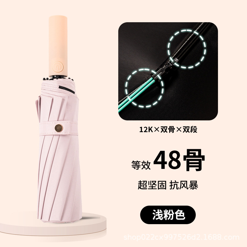 완전 자동 48 뼈 우산 소녀의 태양 보호 UV 보호 남성 접이식 대형 바람 방지 강화 태양 보호 우산