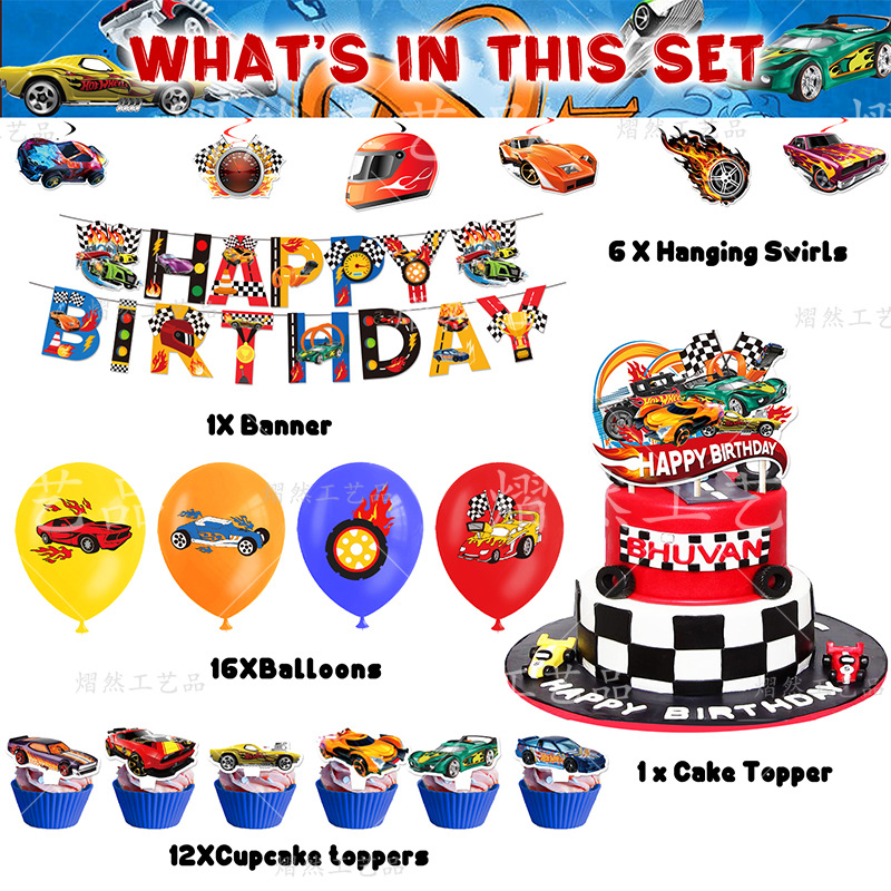 1包16个风火轮赛车气球(4蓝,4黄,4红,4橙)