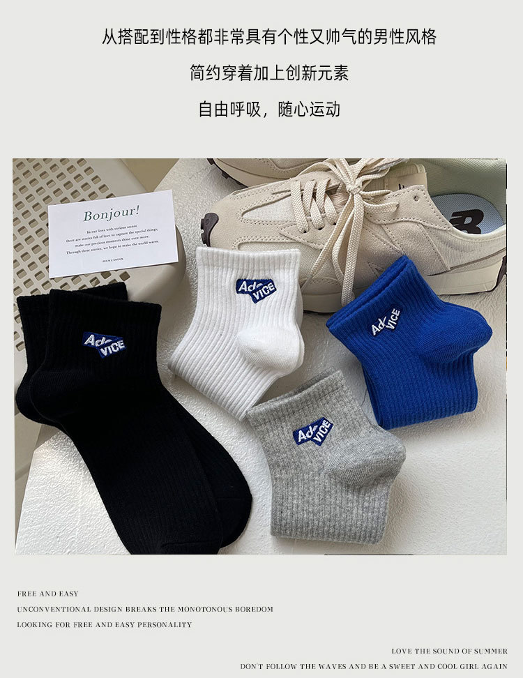 여성용 봄 여름 자수 레터링 양말, 스포츠 스트라이프 남녀 커플용 스트리트 패션 브랜드 주지 양말스토어 가기