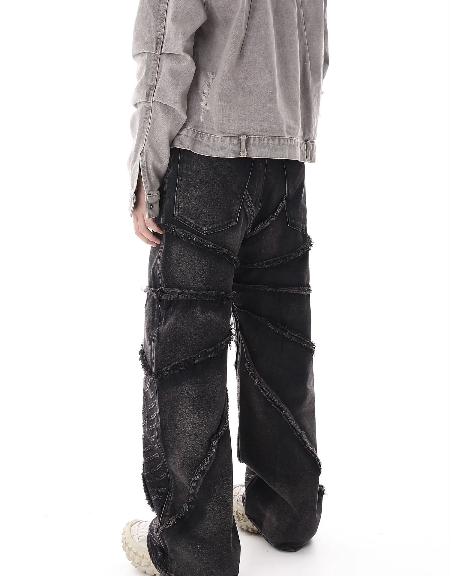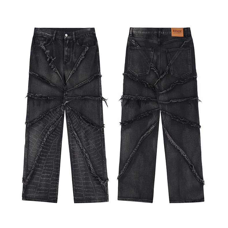 헐렁한 청바지 아메리칸 스타일 레트로 파괴 스파이더 웹 화상 가장자리 청바지 남성용 유럽과 미국 스타일 프라이드 스트리트 루즈한 바지