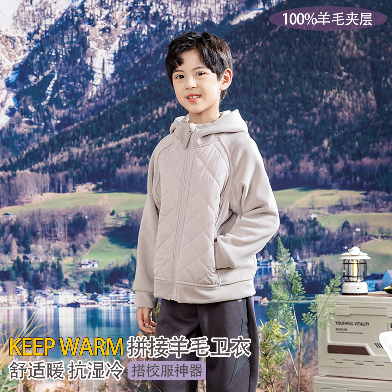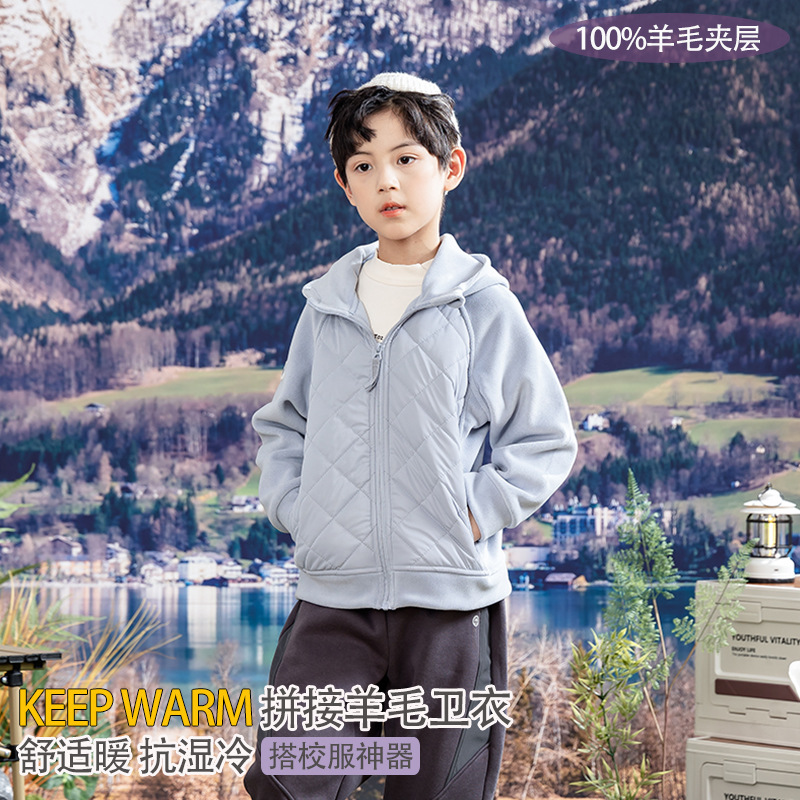 2025新款拼接羊毛卫衣外套 (夹层100%羊毛)