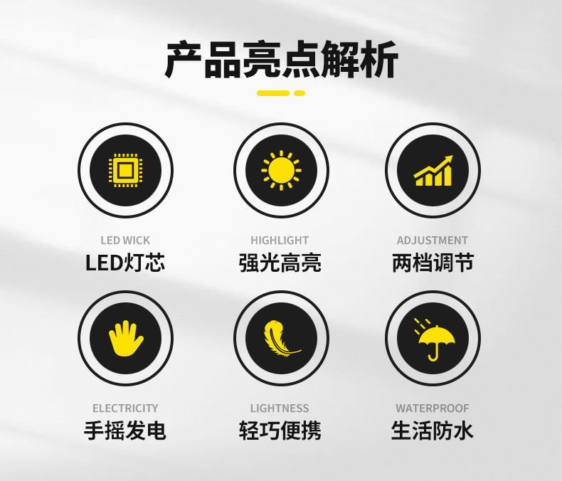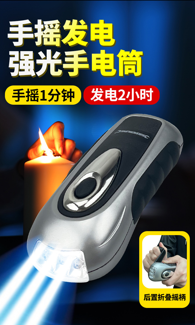 Shenyu 핸드 크랭크 발전 손전등 다기능 전원 차단 비상 조명 가정용 옥외 자기 발전 소형 손전등