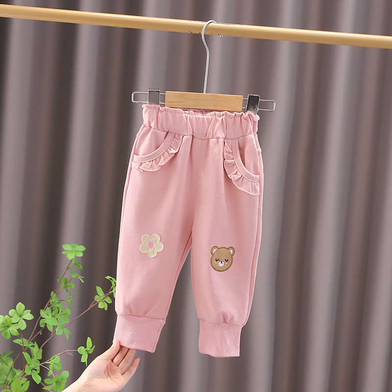• 핑크 꽃 곰 머리 바지 싱글 피스