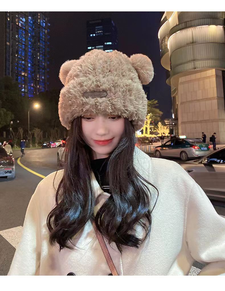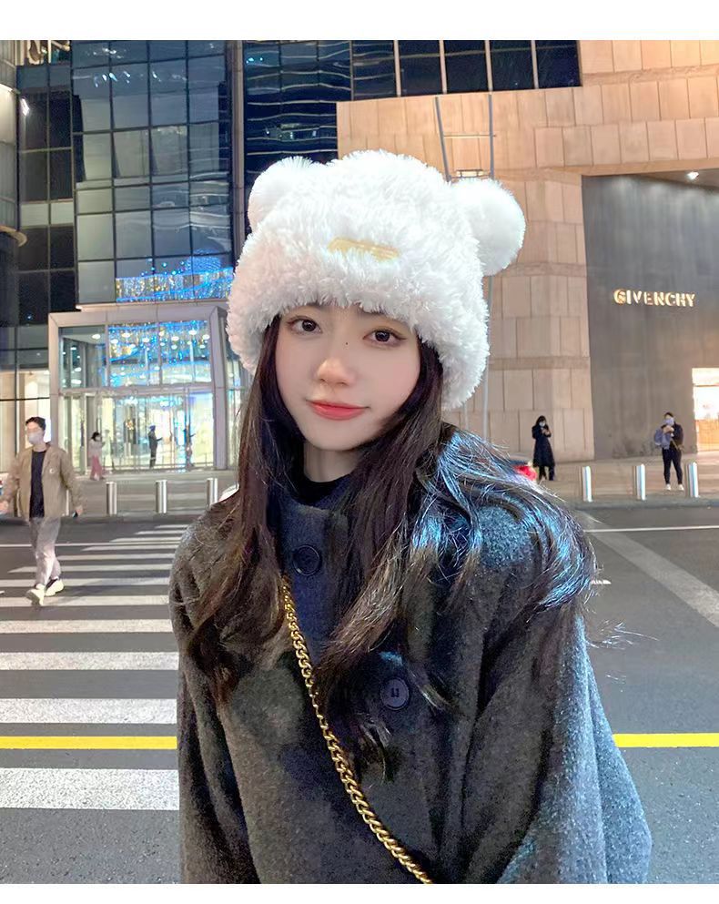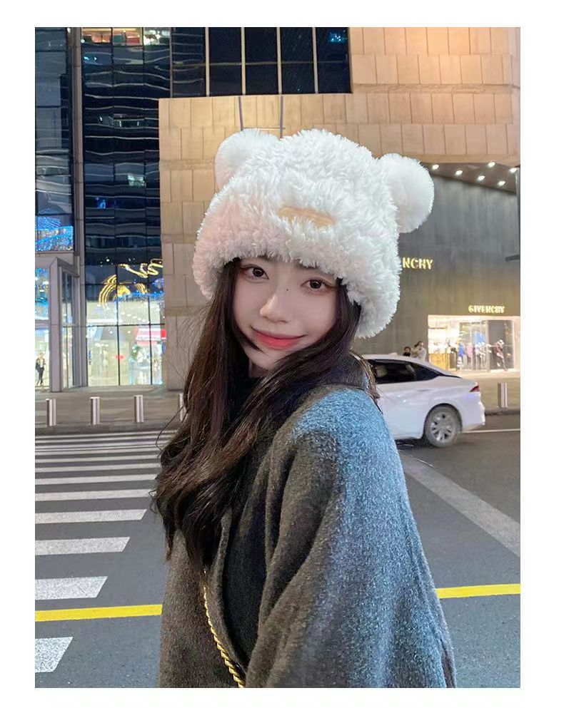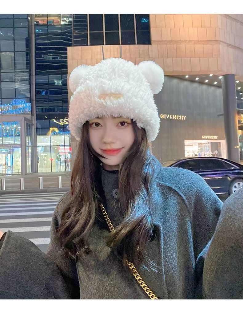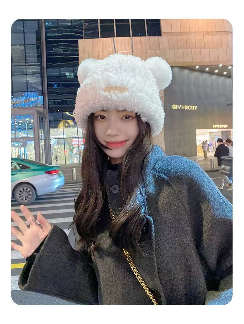 귀여운 곰 귀 니트 모자 여성의 가을과 겨울 새로운 부드러운 왁스 봉제 큰 머리 따뜻한 바오터우 울 모자스토어 가기