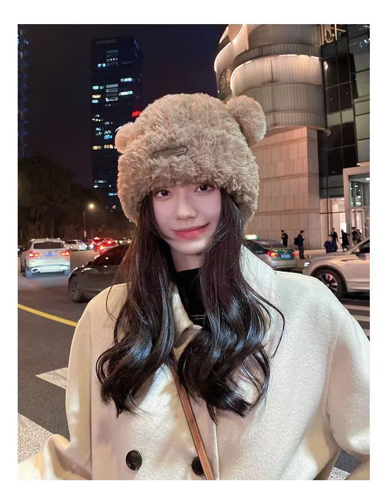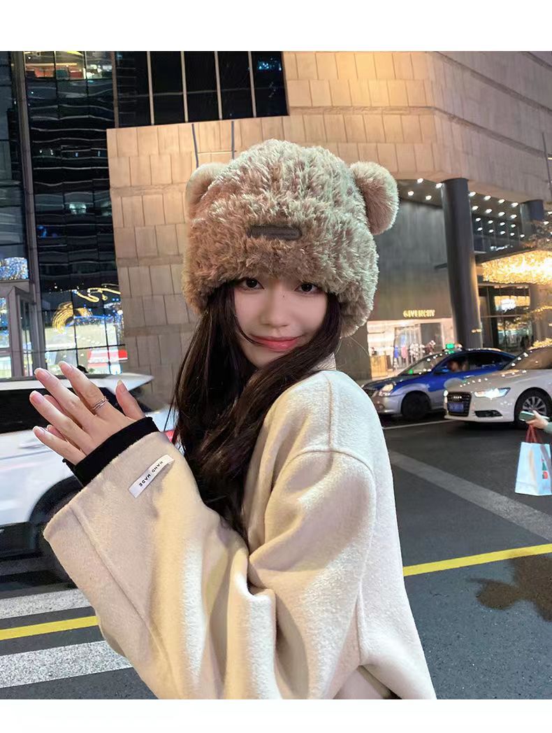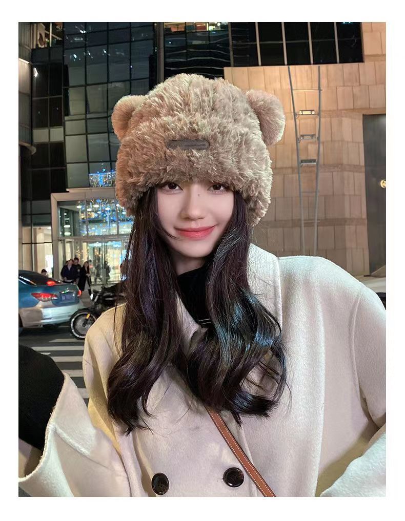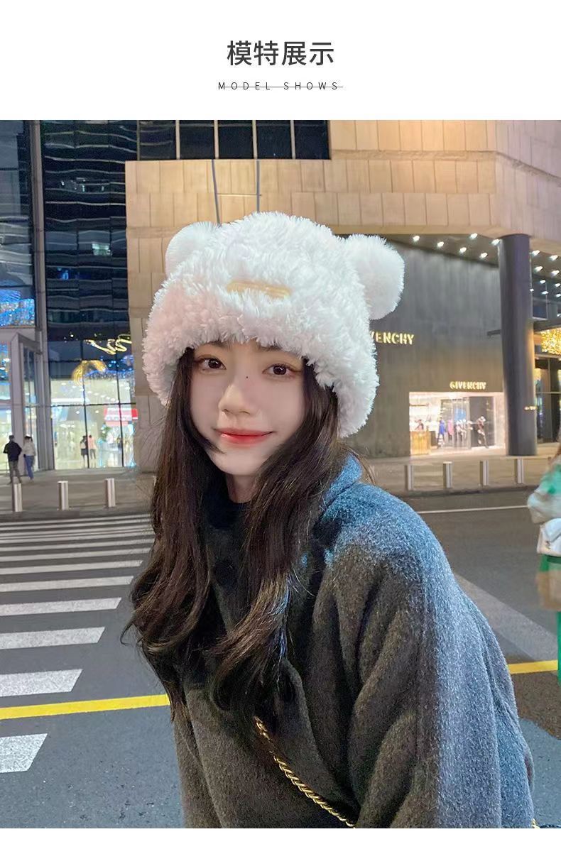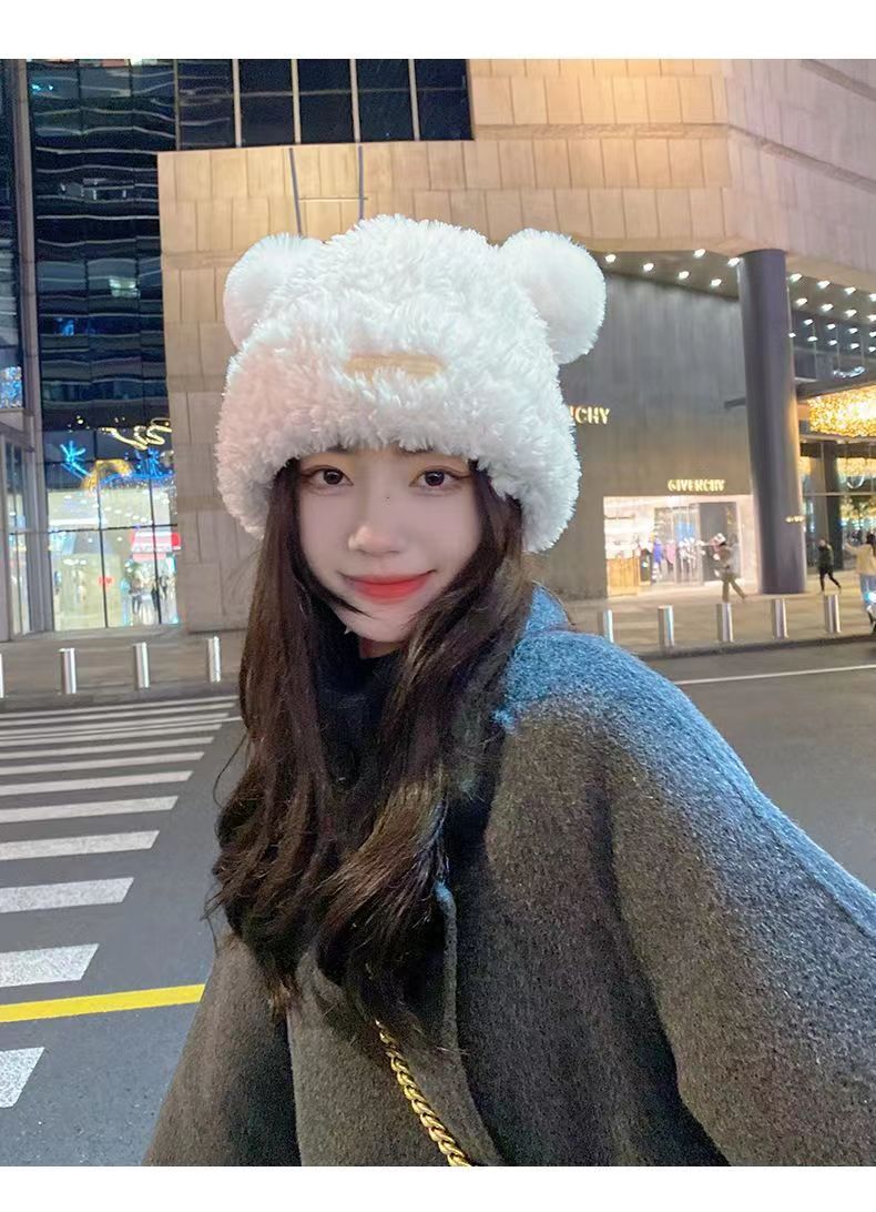 귀여운 곰 귀 니트 모자 여성의 가을과 겨울 새로운 부드러운 왁스 봉제 큰 머리 따뜻한 바오터우 울 모자스토어 가기