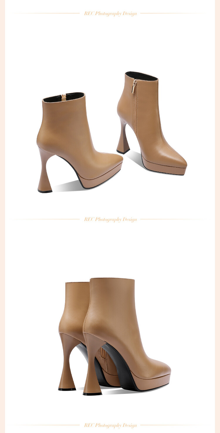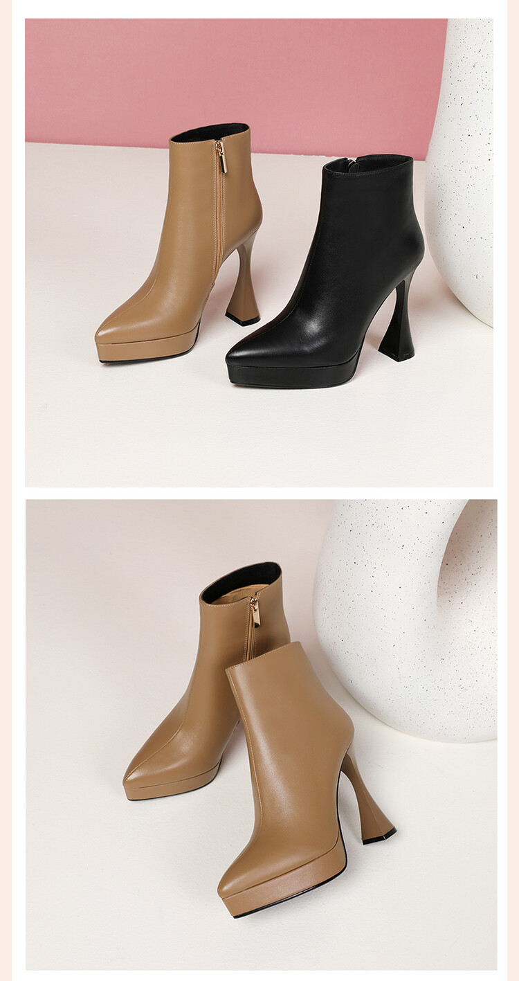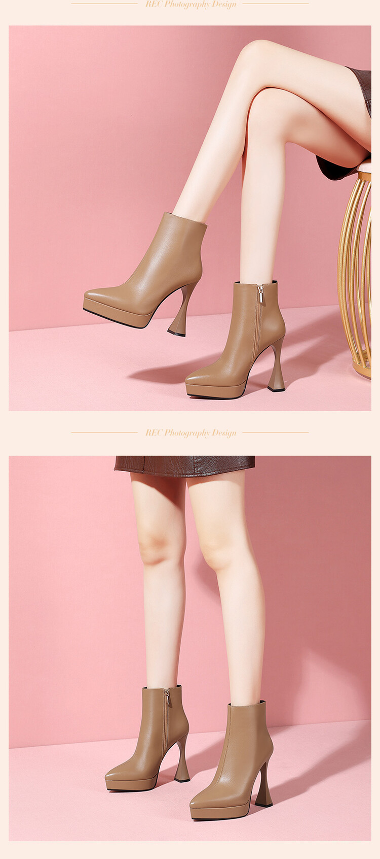 여성용 방수 플랫폼 하이힐 숏부츠 2025년 신상품 플러스 벨벳 사각코 굵은 굽 소가죽 마틴부츠 숏부츠 봄 가을 단화