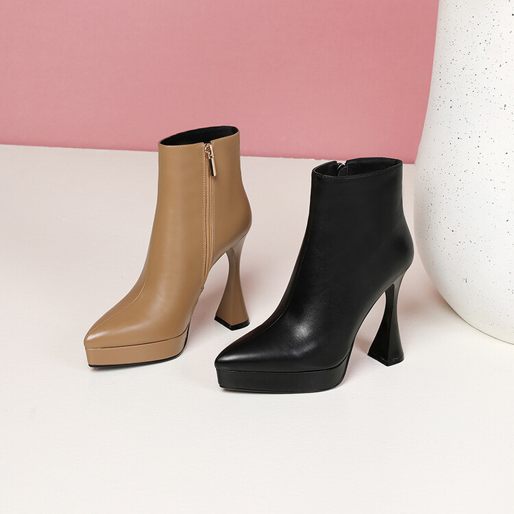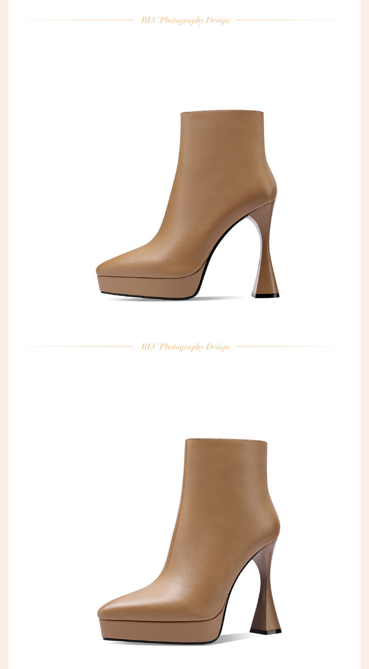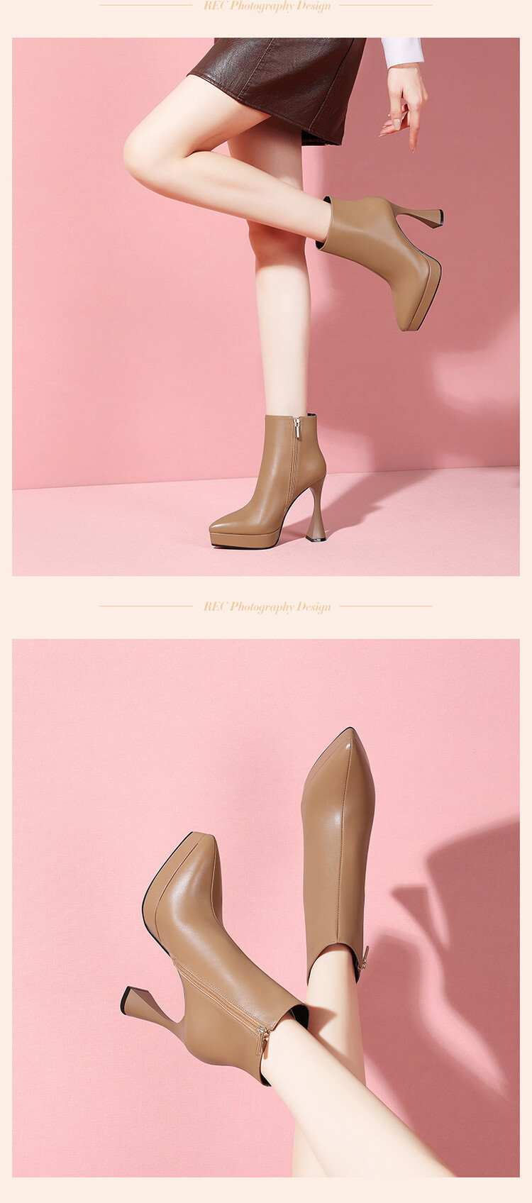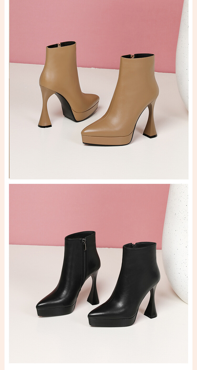 여성용 방수 플랫폼 하이힐 숏부츠 2025년 신상품 플러스 벨벳 사각코 굵은 굽 소가죽 마틴부츠 숏부츠 봄 가을 단화