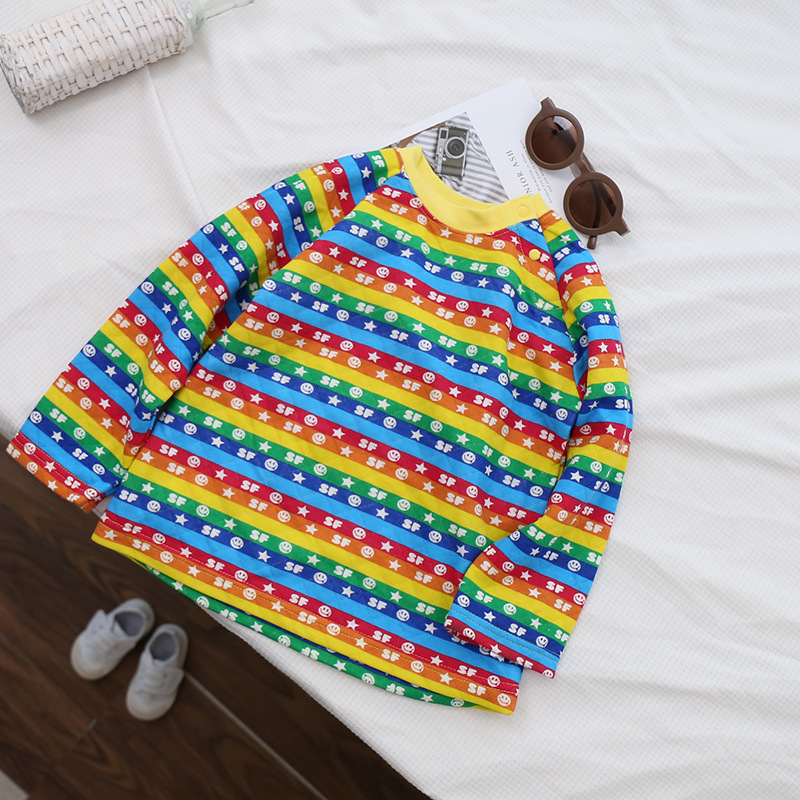 대외 무역 일 싱글 테일 용품 아동복 봄과 가을 긴팔 탑 에어 레이어 홈웨어 레인보우 스트라이프 스웨터스토어 가기