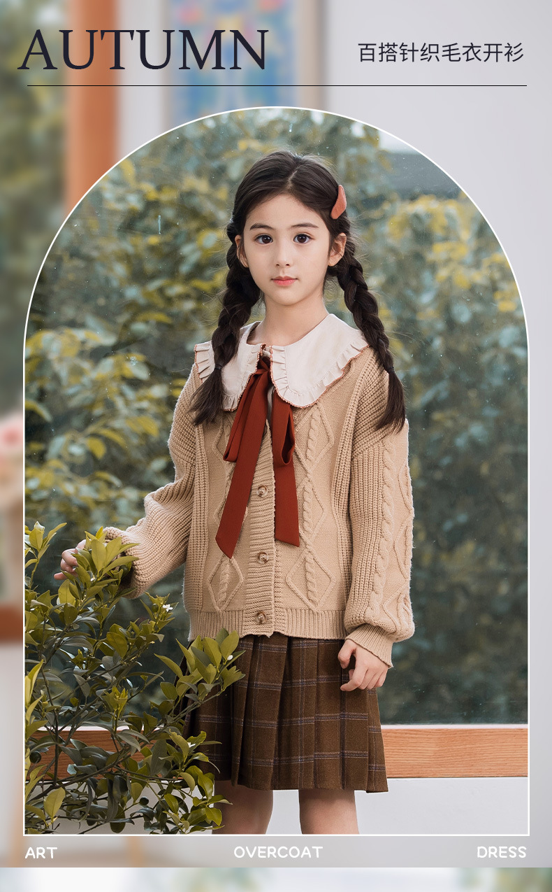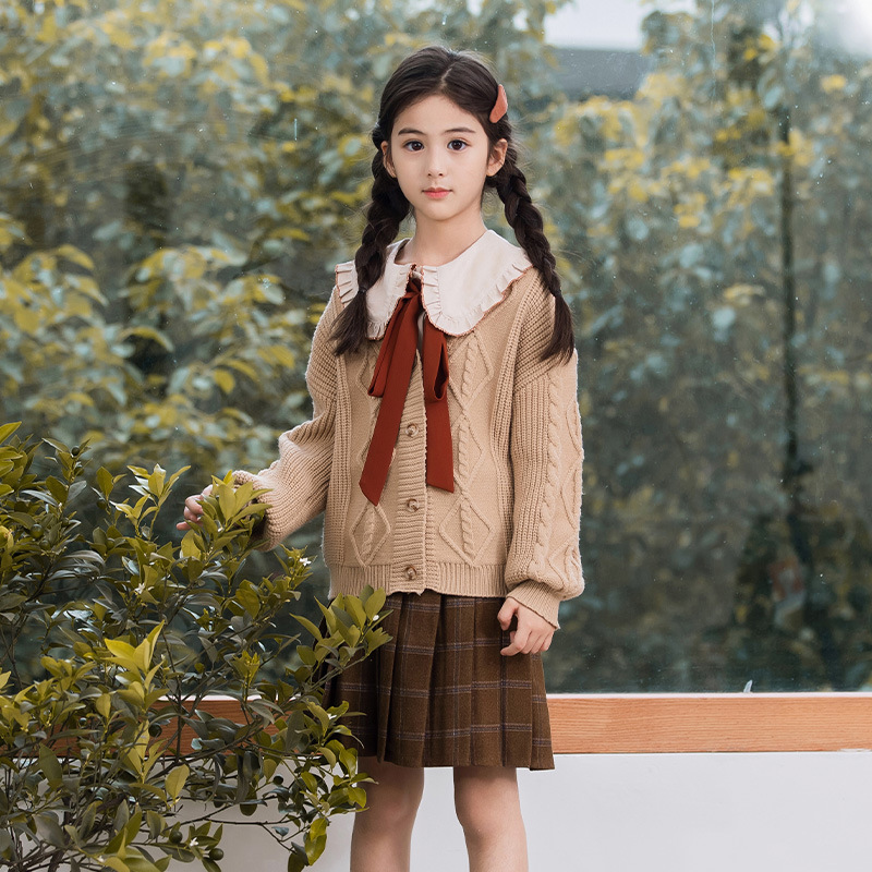 여아 정장 스커트 2025 봄, 가을 새로운 아동복 카디건 스웨터 재킷 아동 셔츠 주름 스커트 3 피스 세트스토어 가기
