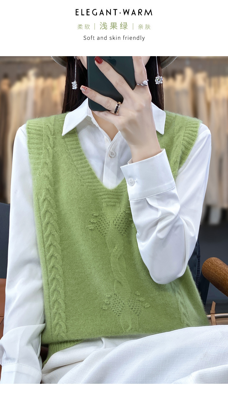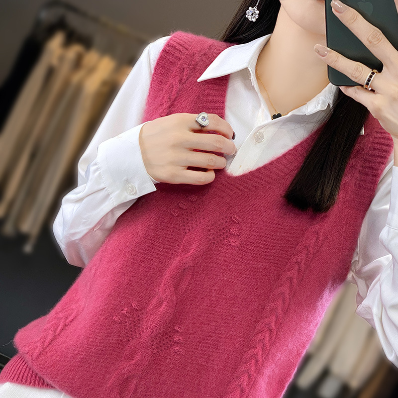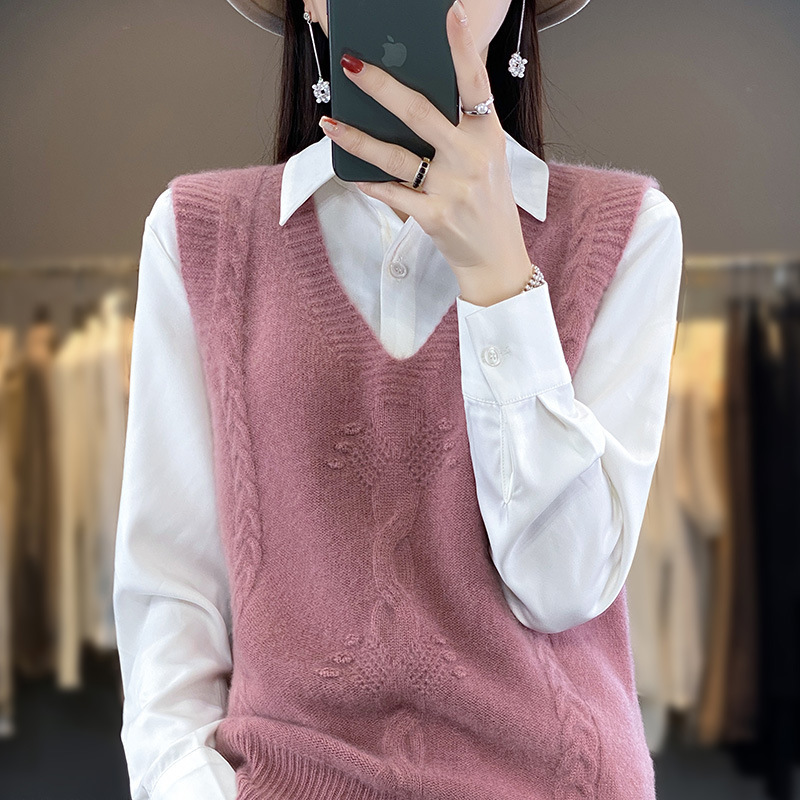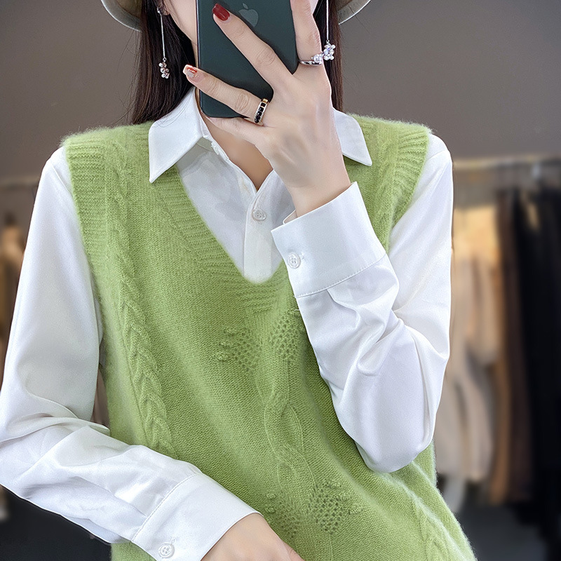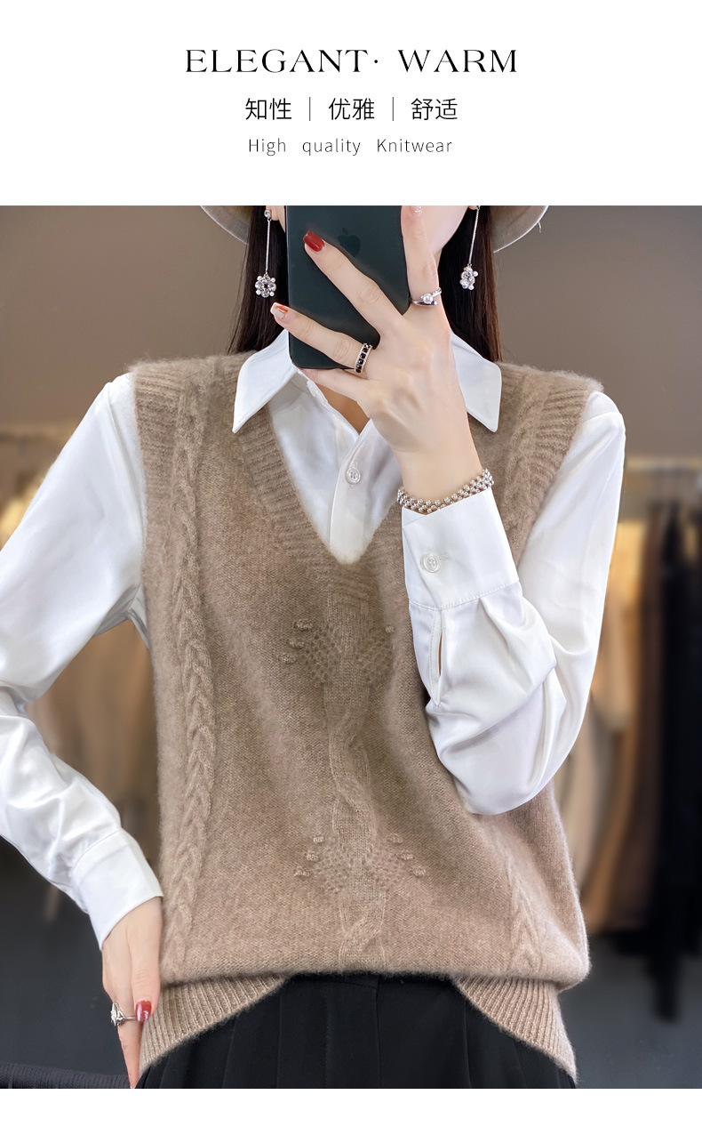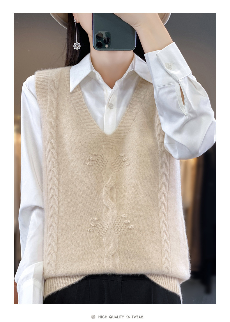 모직 니트 조끼 여성용 2023 봄 가을 신상 민소매 스웨터 브이넥 루즈핏 코트스토어 가기