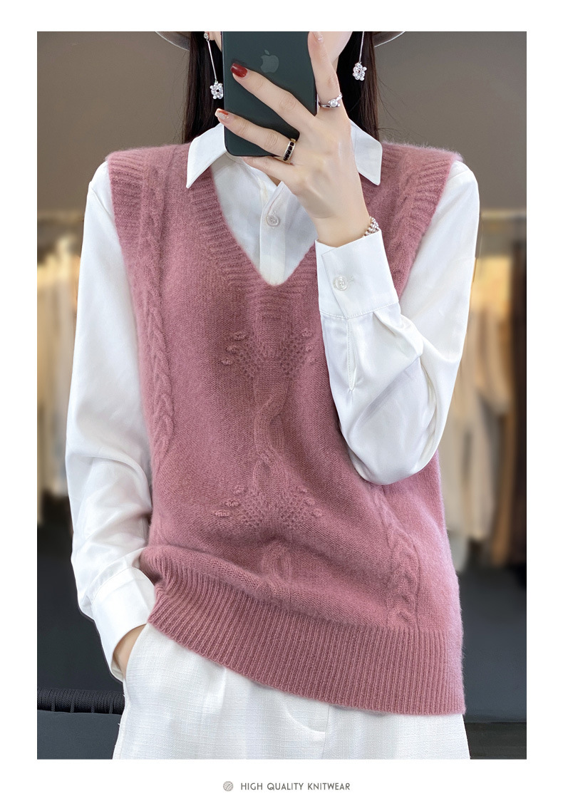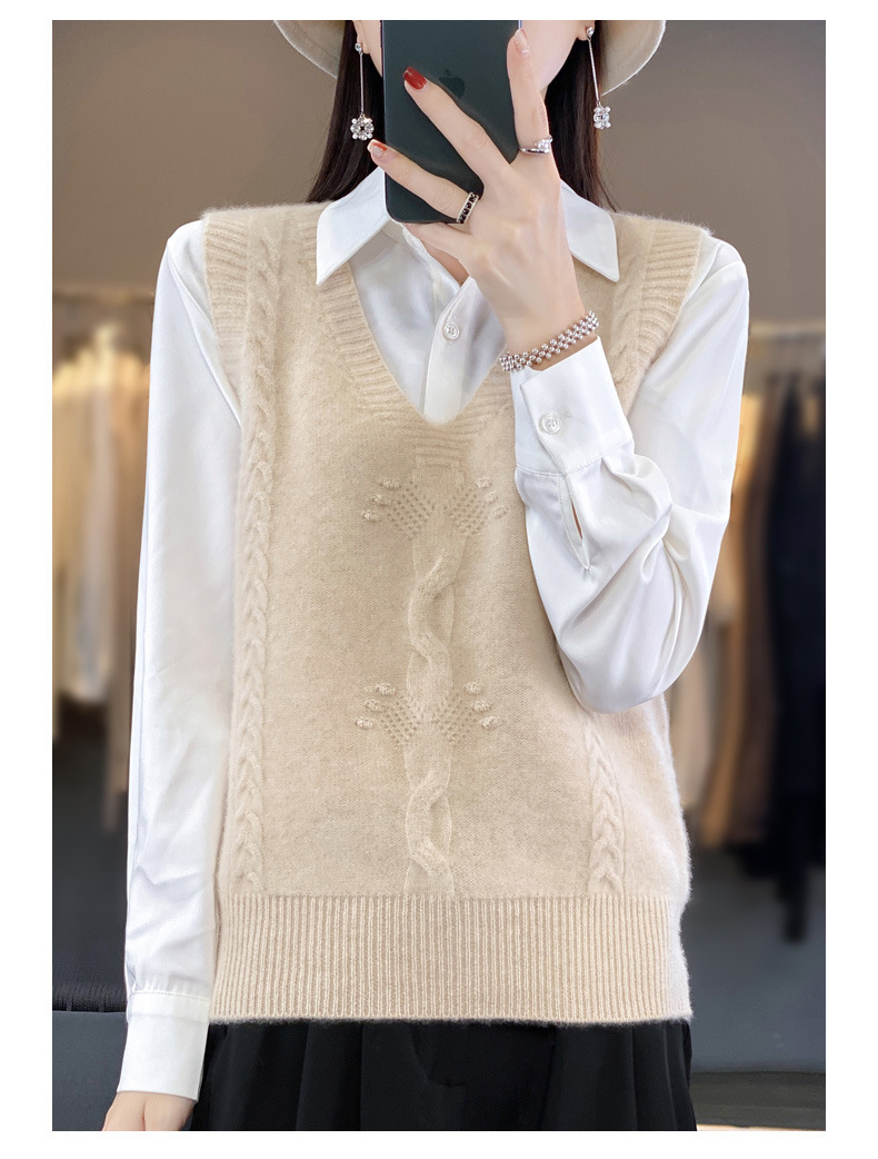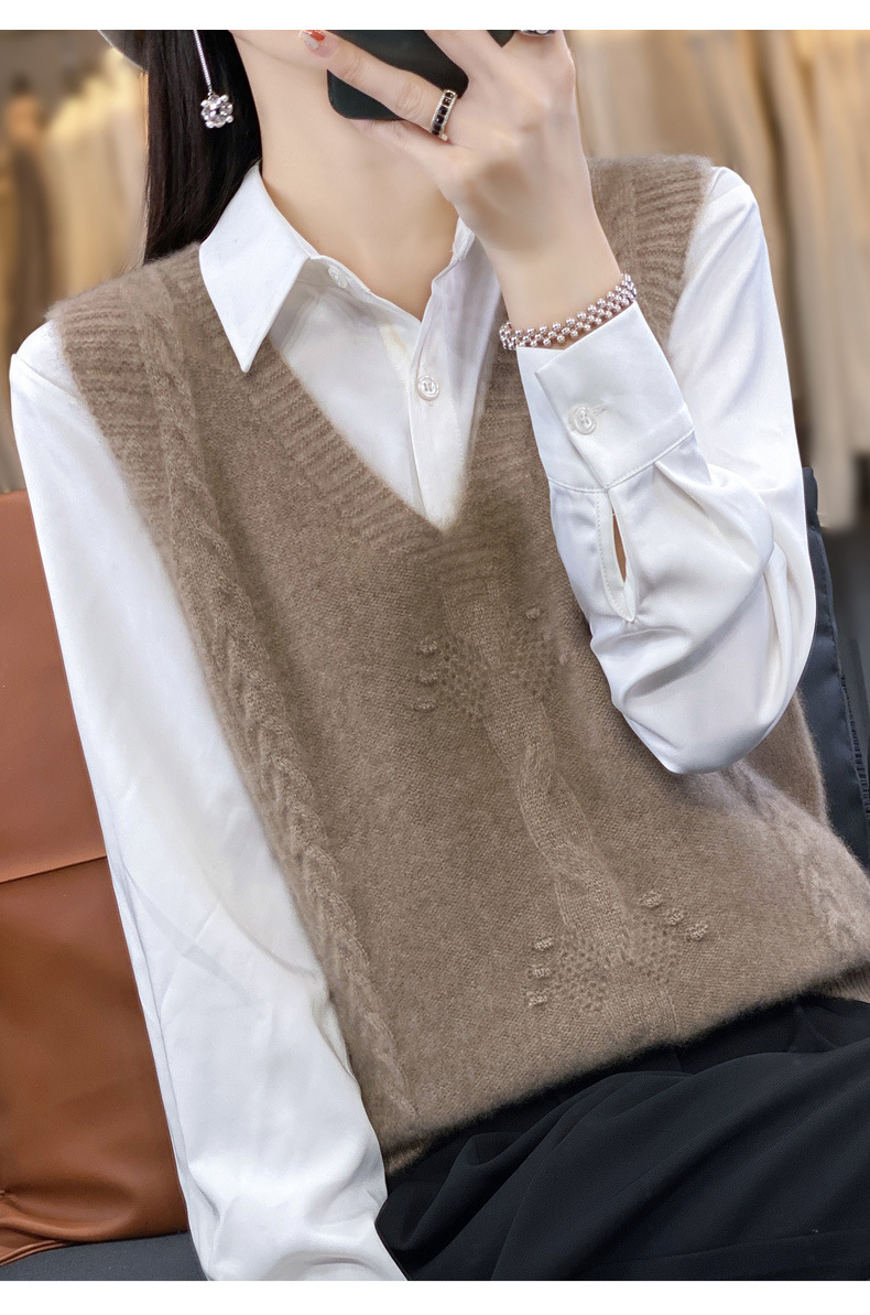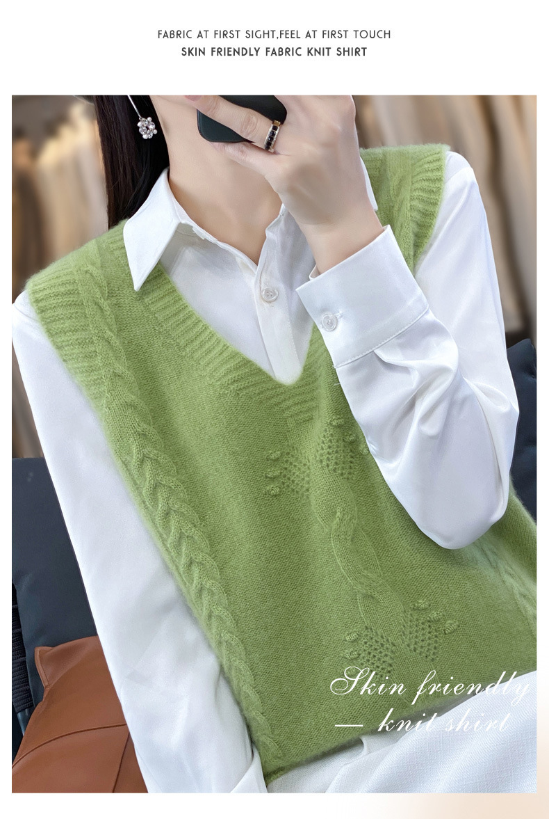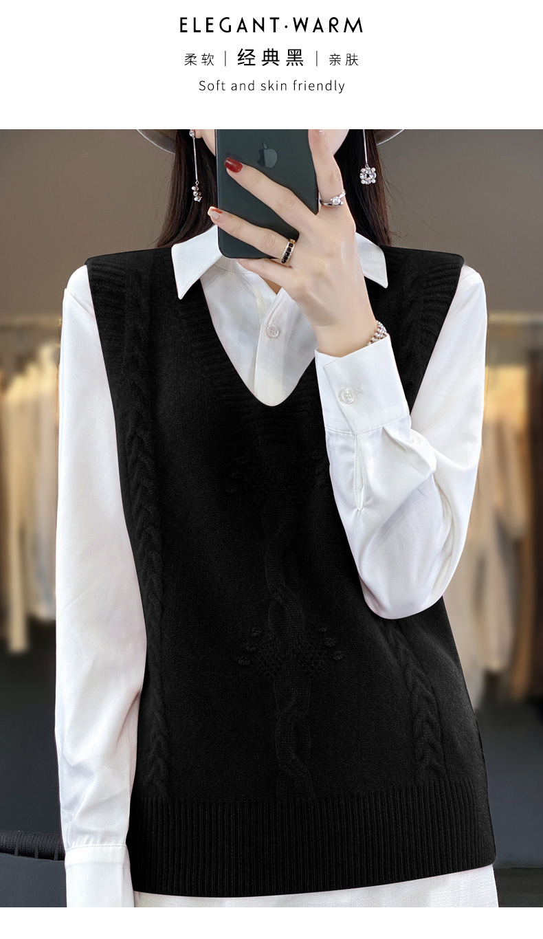 모직 니트 조끼 여성용 2023 봄 가을 신상 민소매 스웨터 브이넥 루즈핏 코트스토어 가기