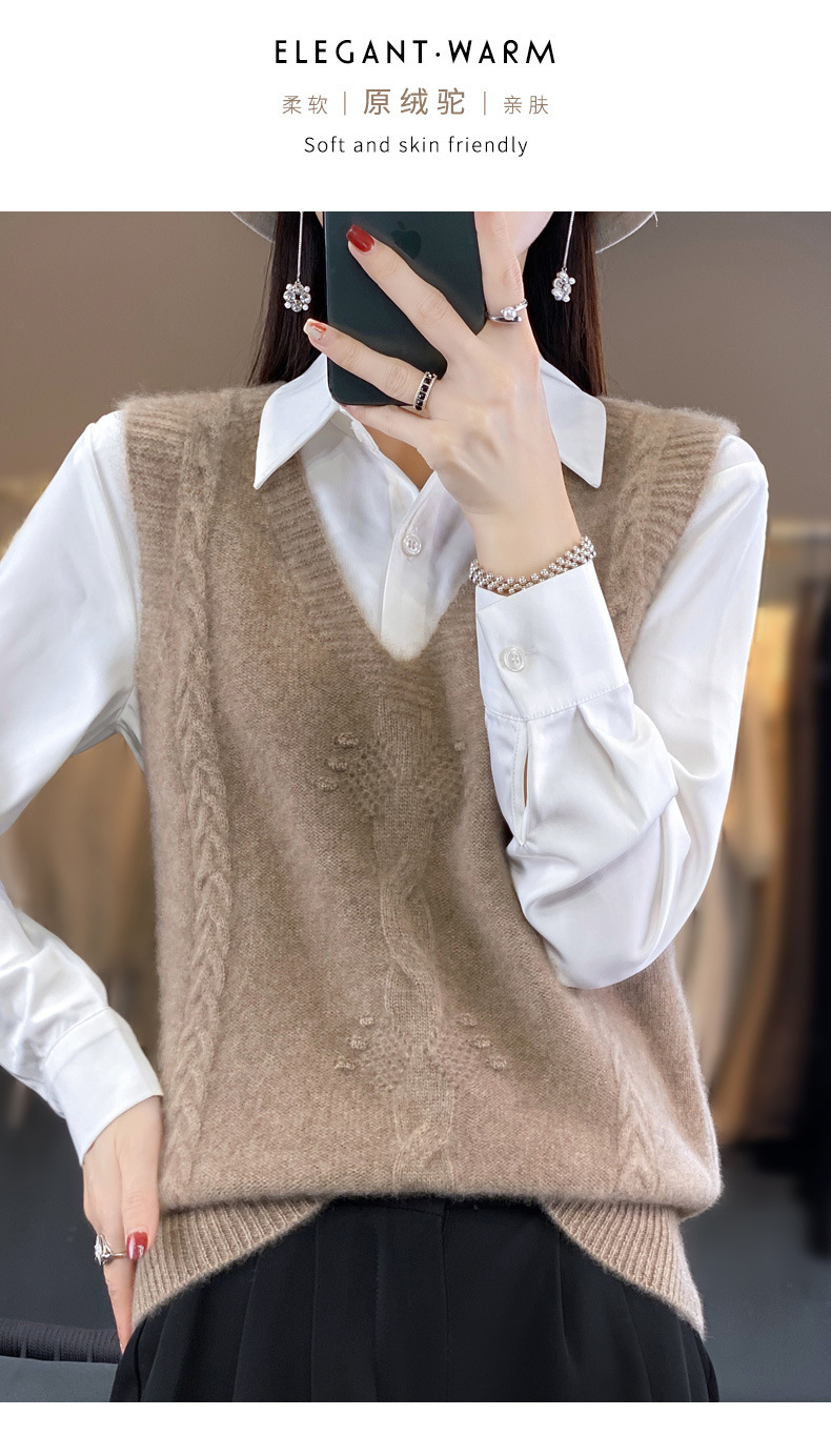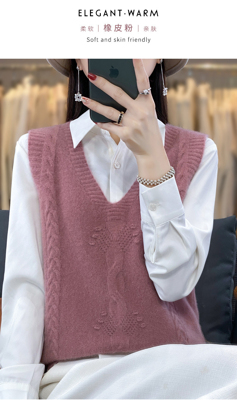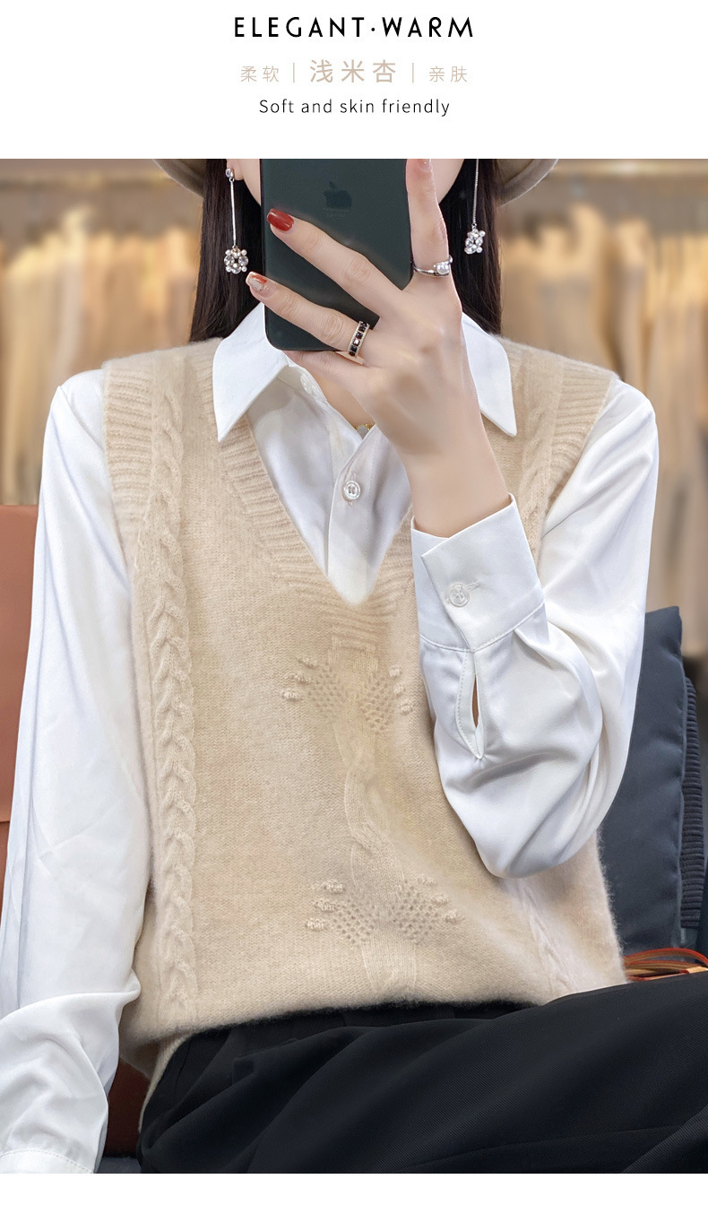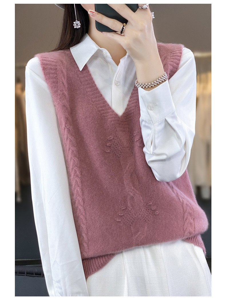 모직 니트 조끼 여성용 2023 봄 가을 신상 민소매 스웨터 브이넥 루즈핏 코트스토어 가기