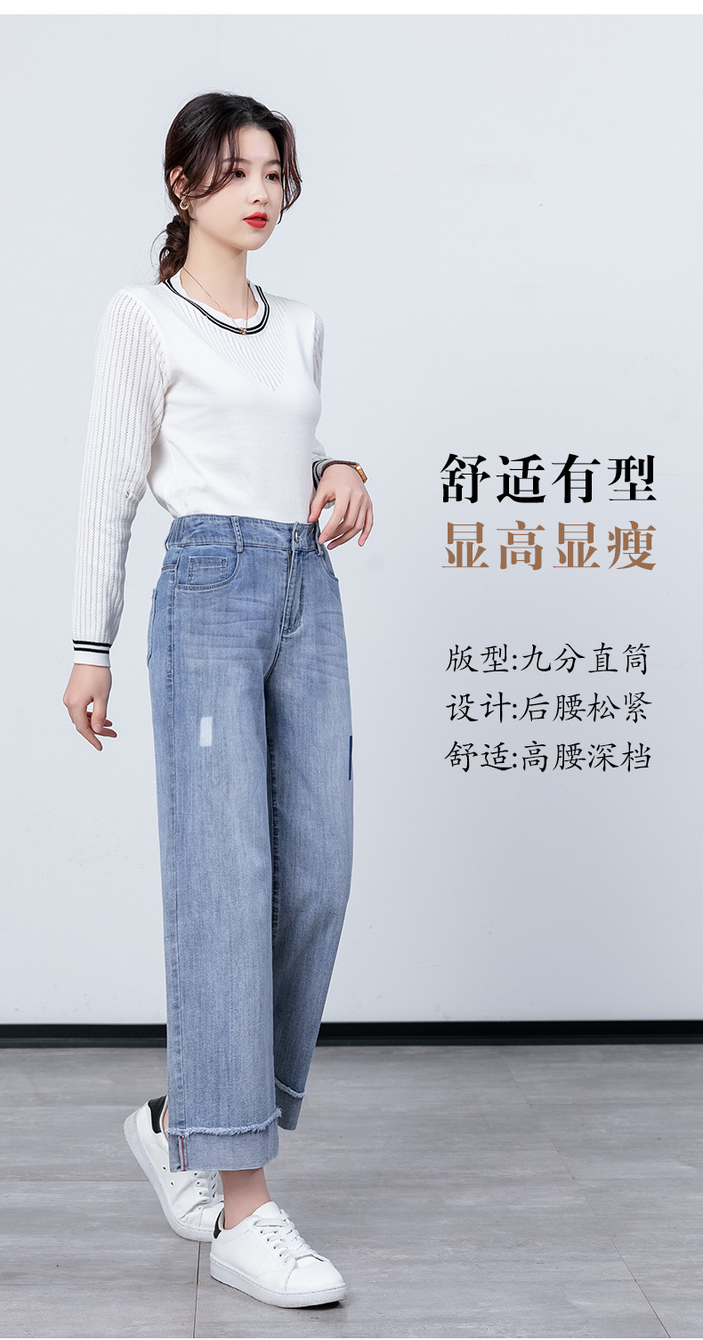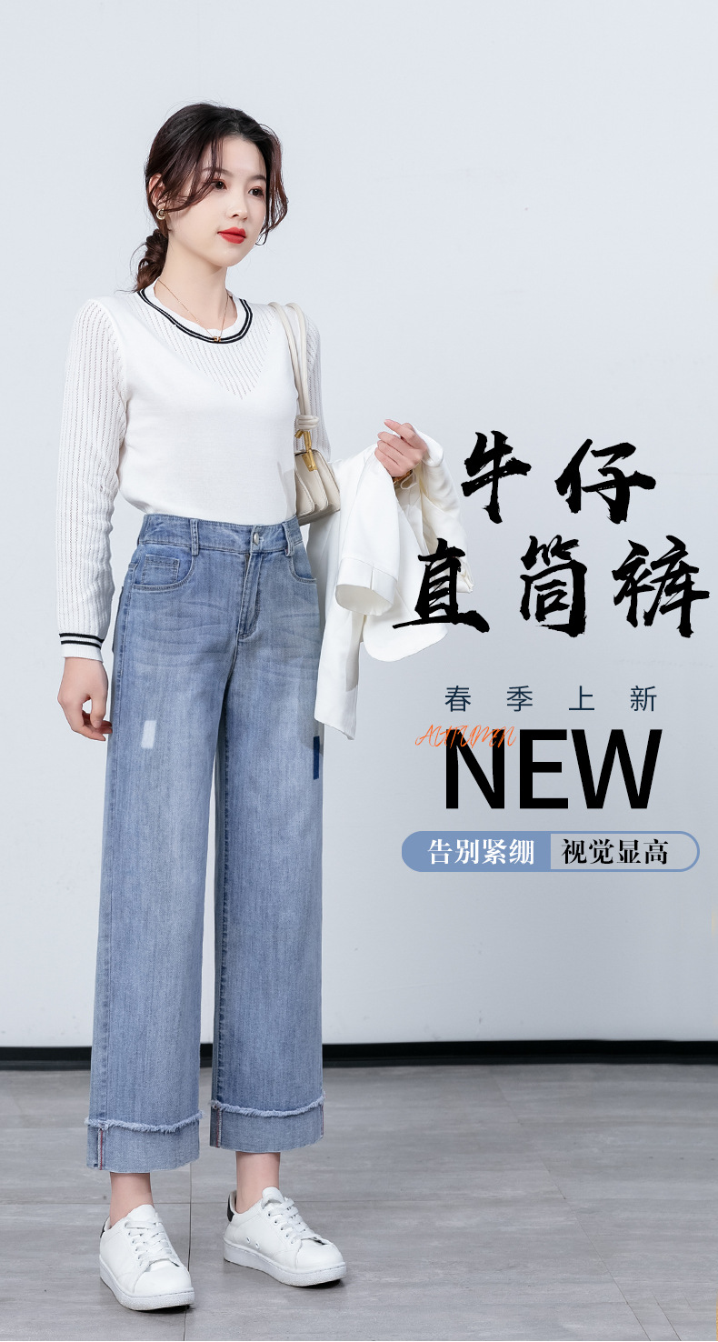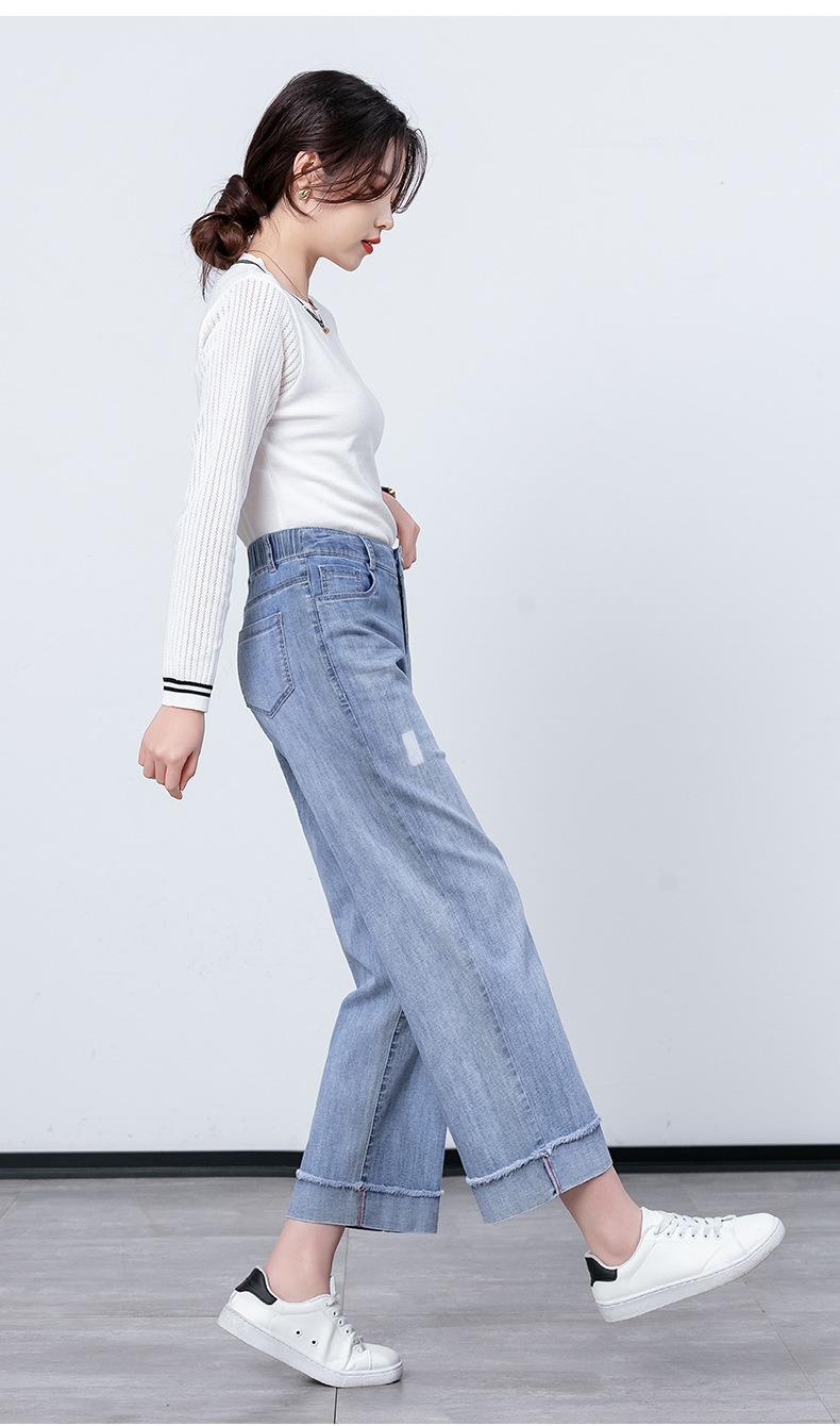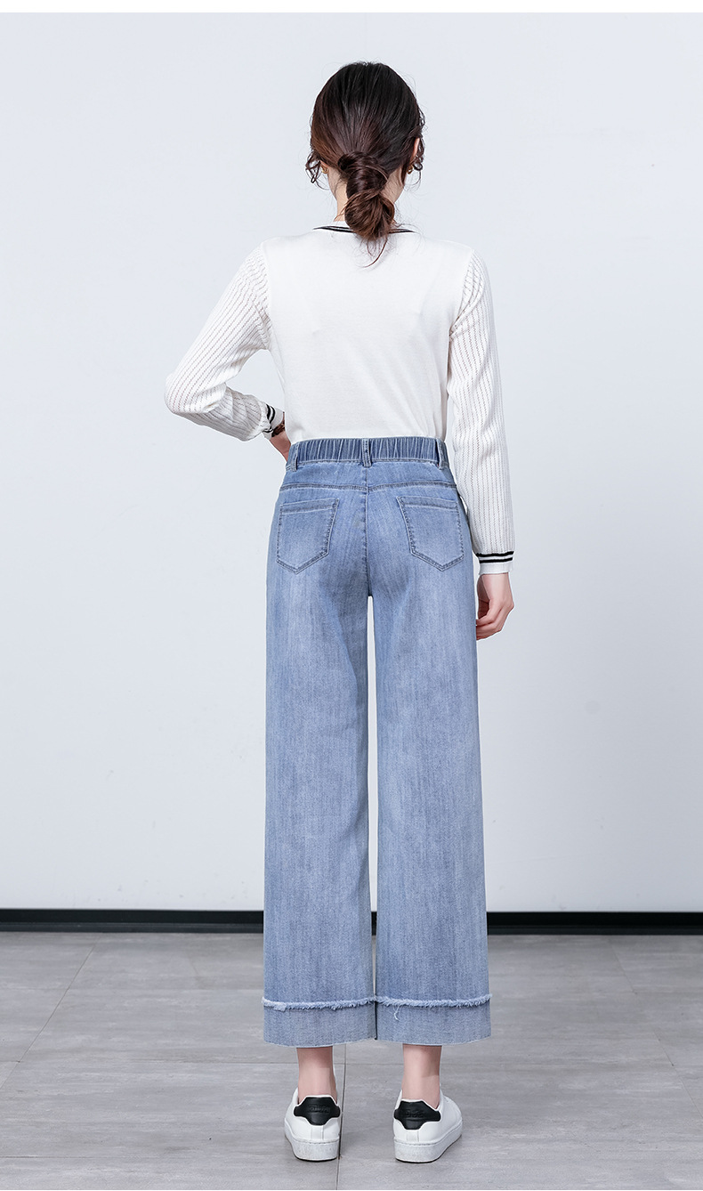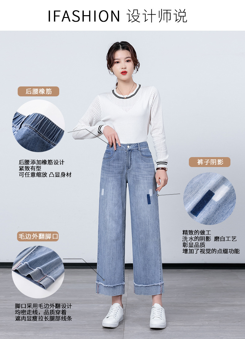 가을 2023 그림자 청바지 여성의 탄성 허리 탄성 밸브 루즈 발 크롭 와이드 레그 팬츠 20153