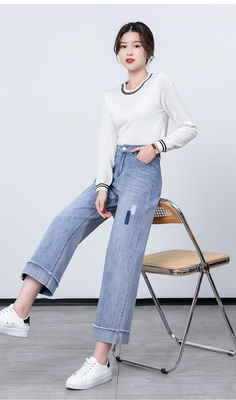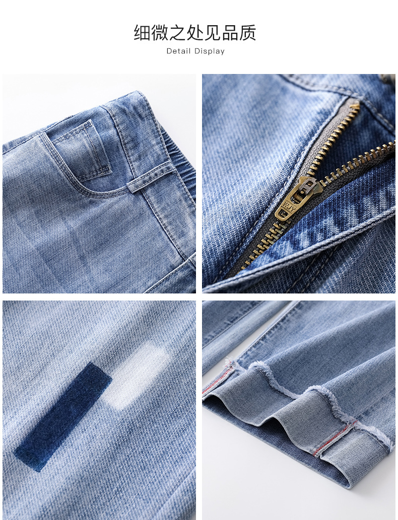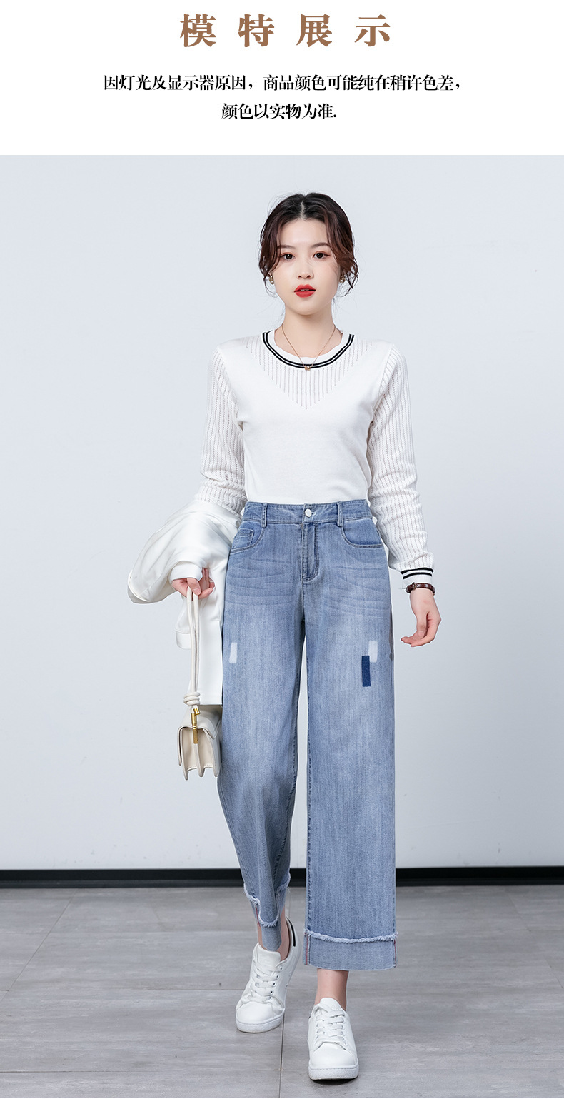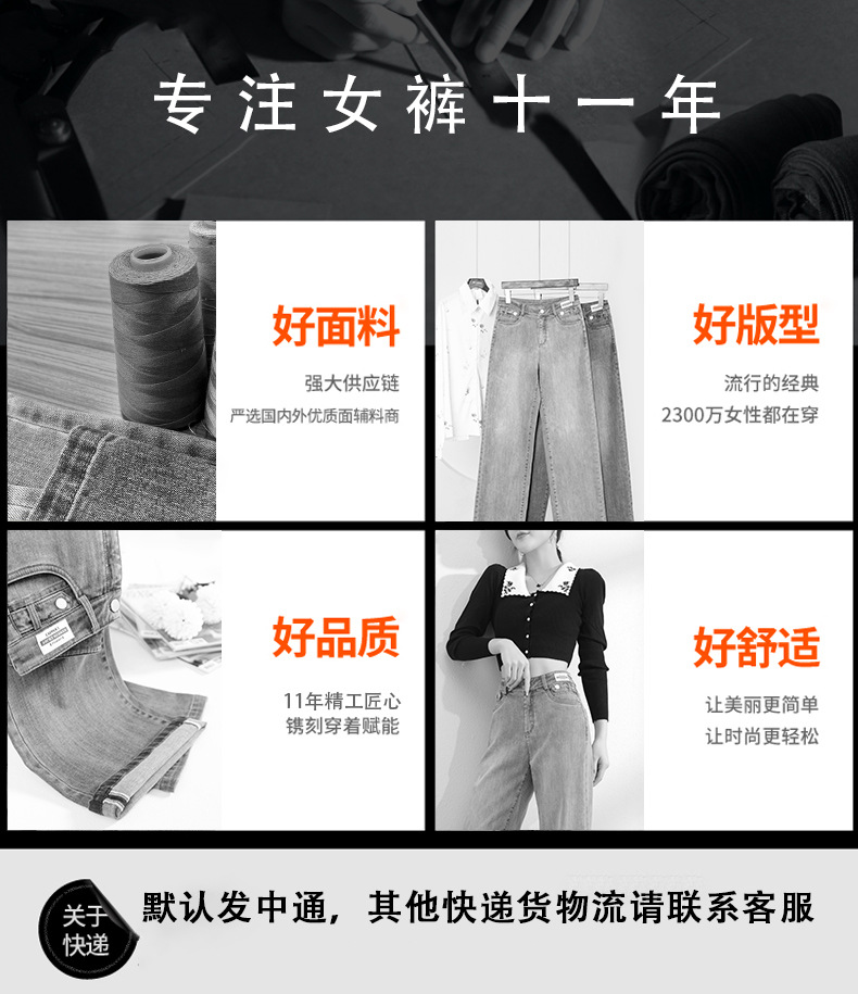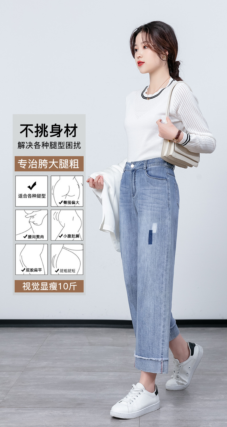 가을 2023 그림자 청바지 여성의 탄성 허리 탄성 밸브 루즈 발 크롭 와이드 레그 팬츠 20153