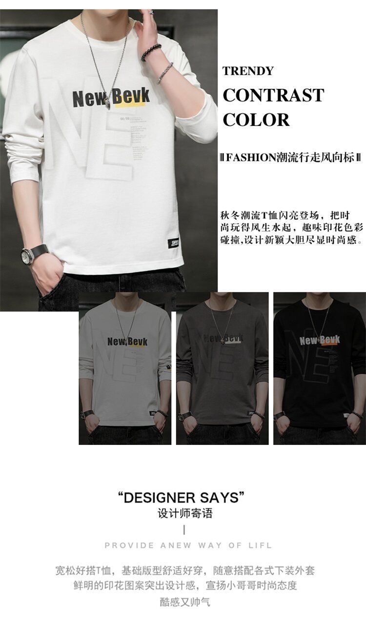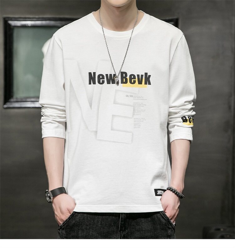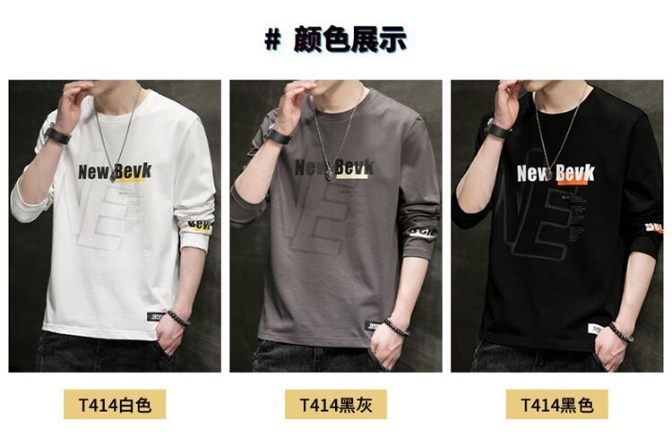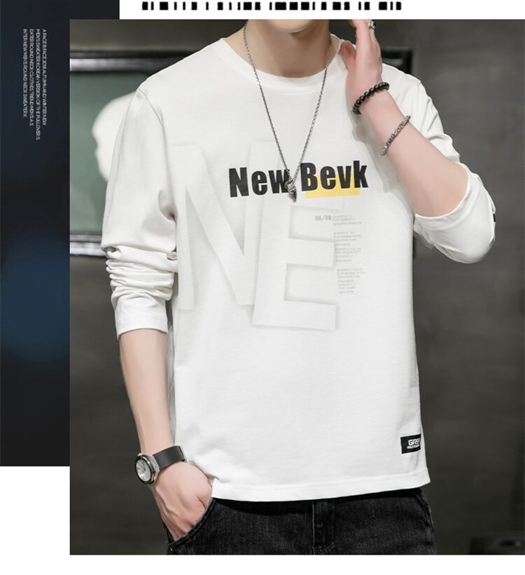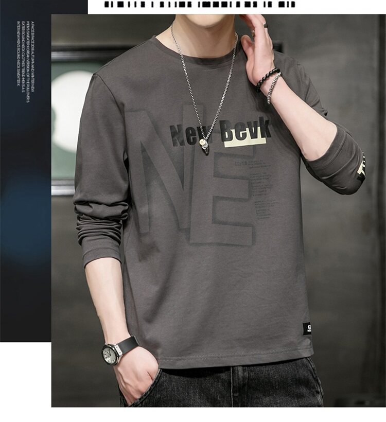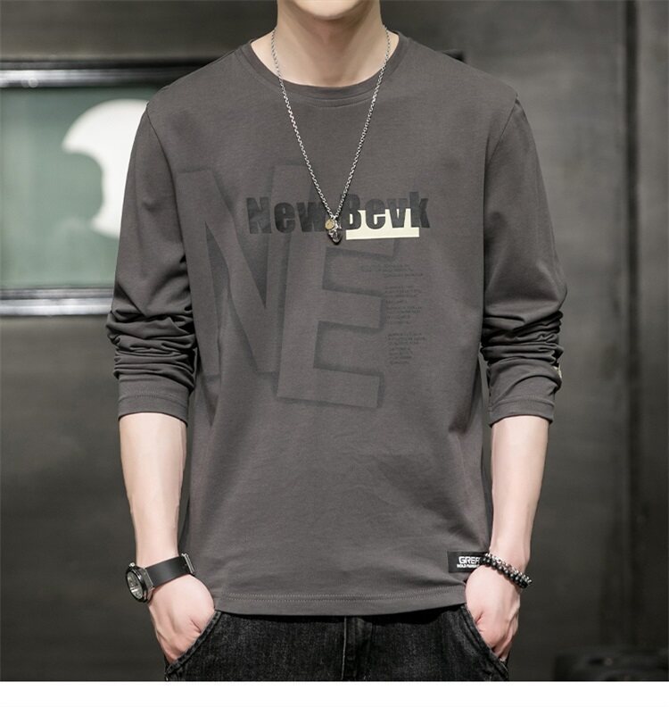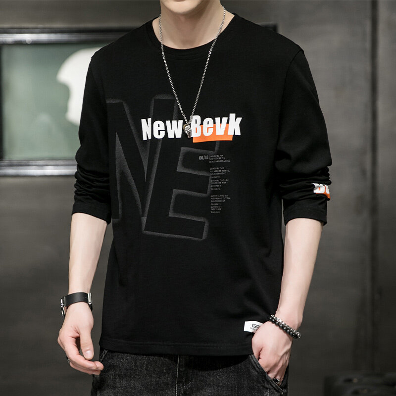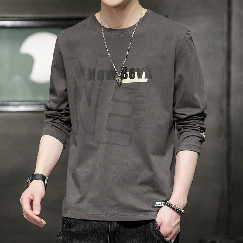 0317 봄과 가을 둥근 목 긴팔 티셔츠 남성용 퓨어 코튼 루즈 트렌디 티셔츠 옷 남성베이스 셔츠 탑스토어 가기