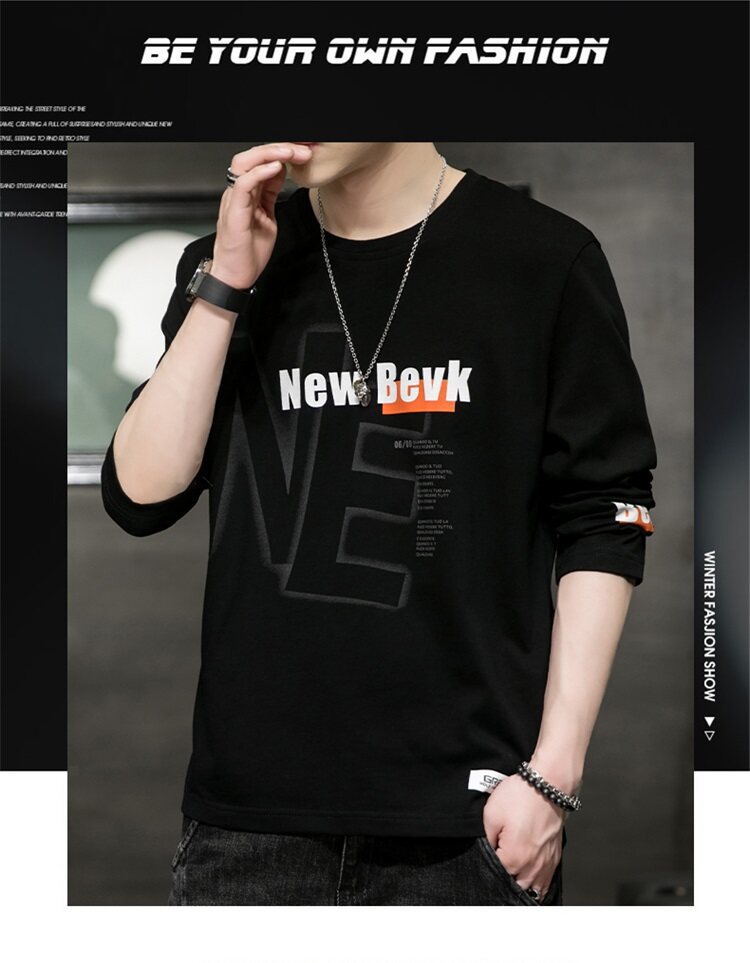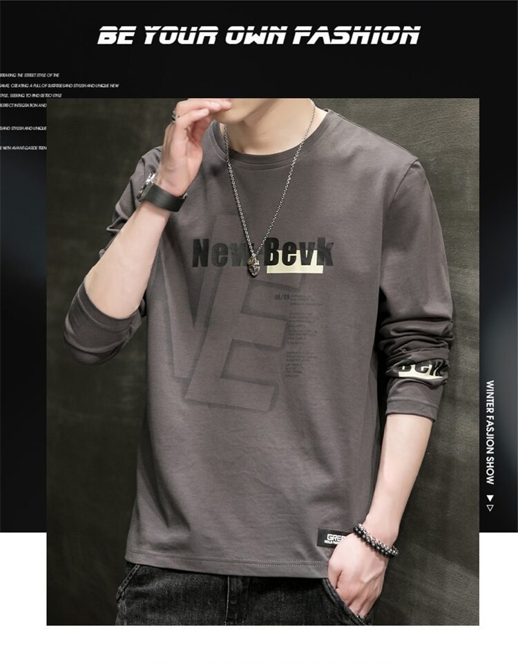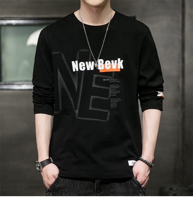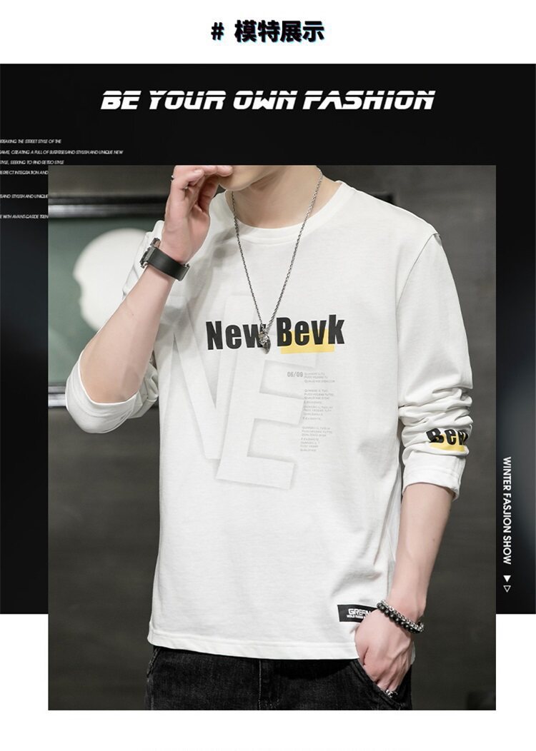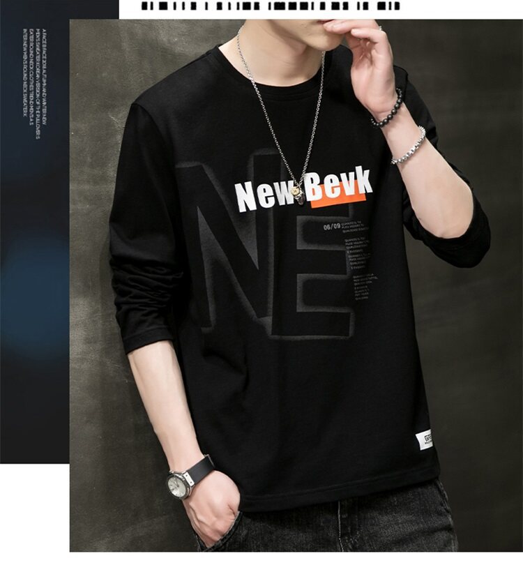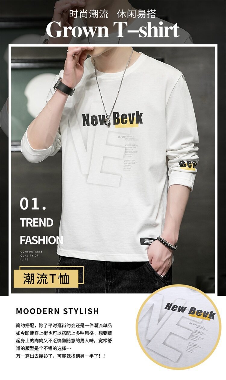 0317 봄과 가을 둥근 목 긴팔 티셔츠 남성용 퓨어 코튼 루즈 트렌디 티셔츠 옷 남성베이스 셔츠 탑스토어 가기