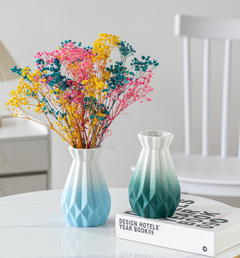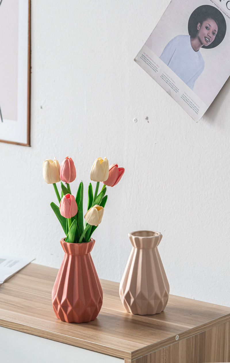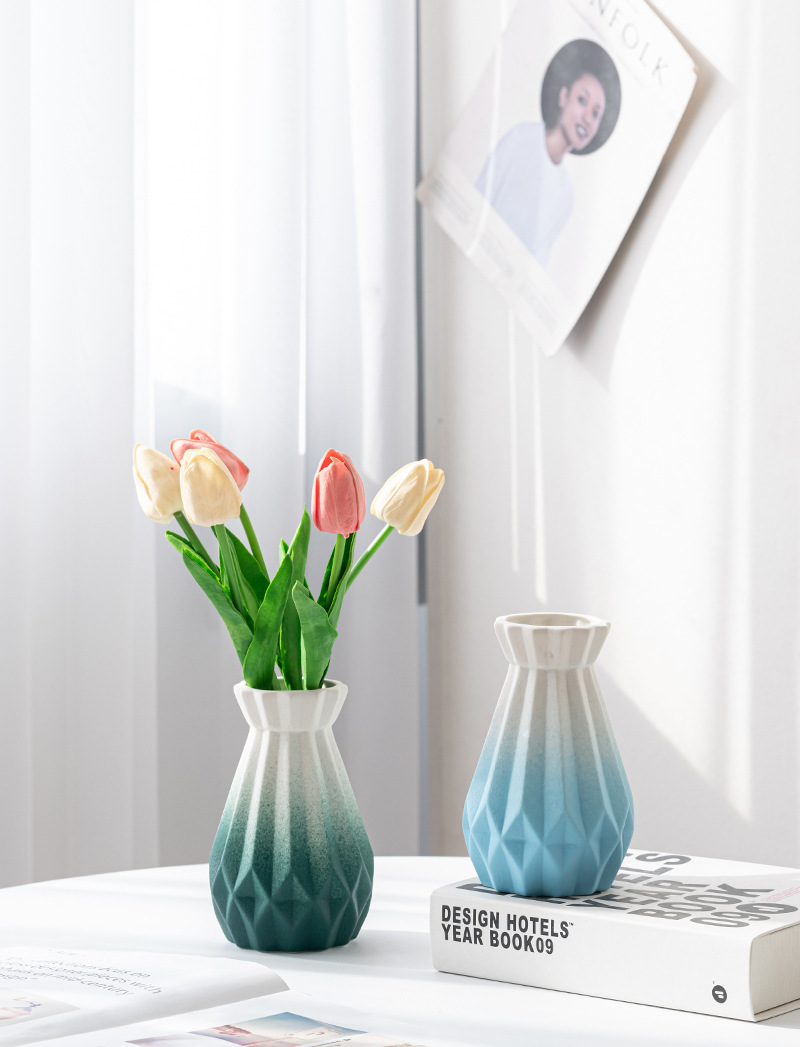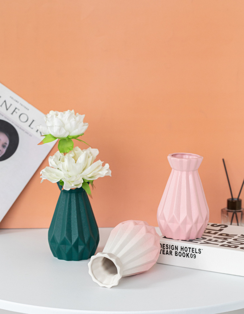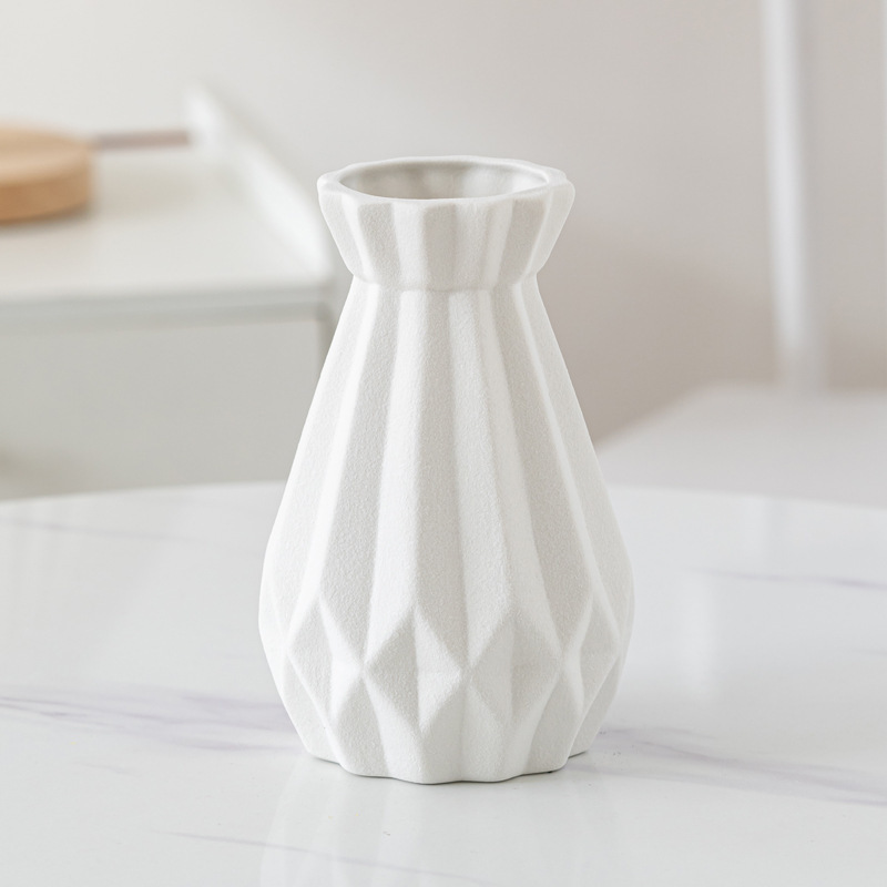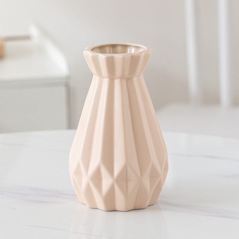 Dehua 젖빛 수직 패턴 창조적 인 간단한 가정용 세라믹 꽃병 장식품 북유럽 스타일 복고풍 매트 화이트 오렌지 옐로우스토어 가기