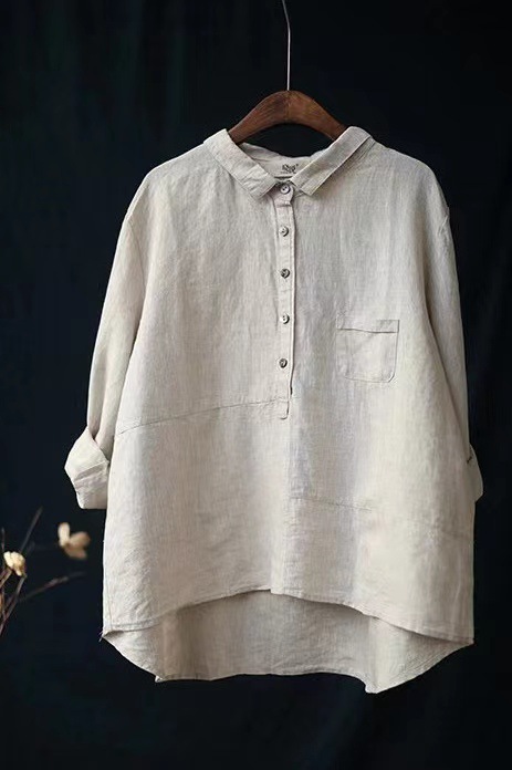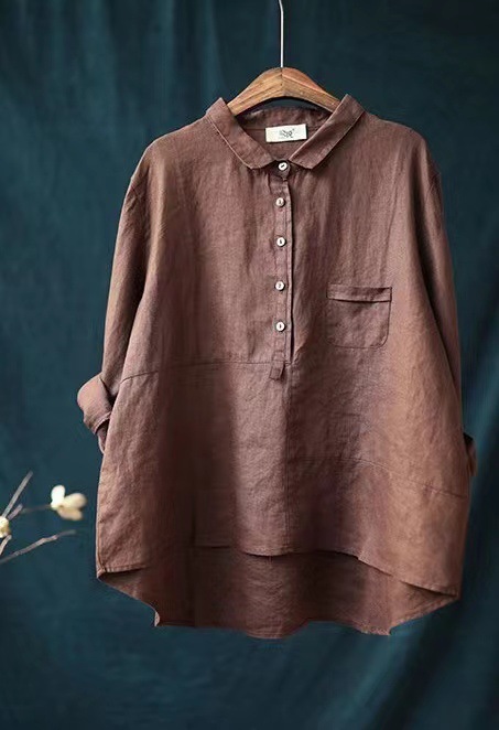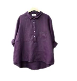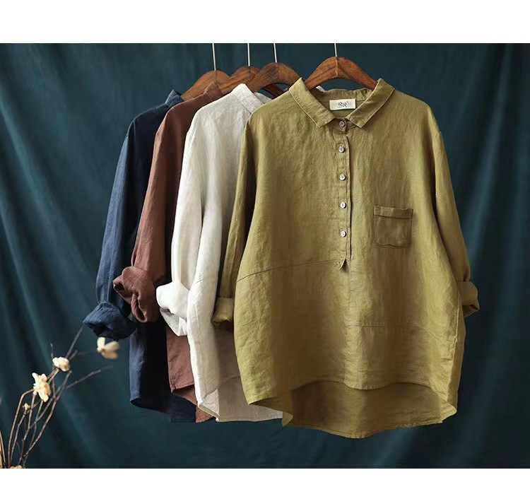 2023 이른 가을 새로운 캐주얼 느슨한 단색 린넨 셔츠 여자의 옷깃 긴 소매 면 린넨 여성 의류스토어 가기