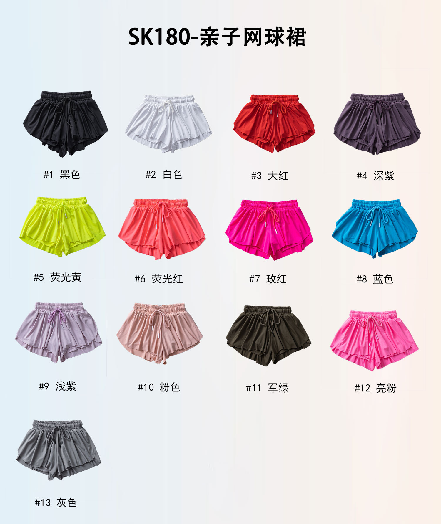 대외 무역 요가 스커트 여성의 크로스 국경 부모-자식 원피스 스포츠 속건 포켓 졸라매는 끈 통기성 반바지와 달리기 테니스 스커트