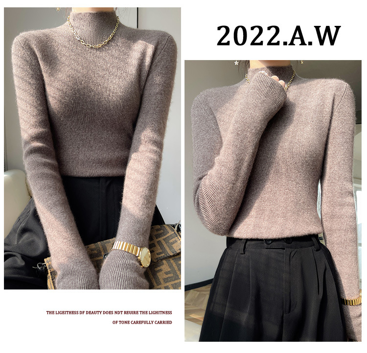 한국판 25 가을 겨울 신상 하프 터틀넥 이너웨어 풀오버 긴팔 니트 여성 슬림핏 베이스 레이어 단색 스웨터스토어 가기