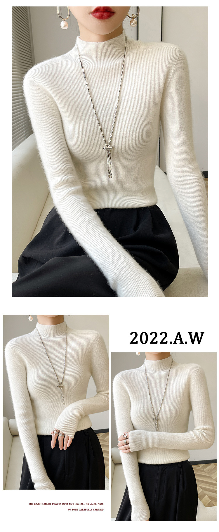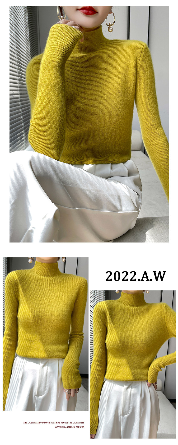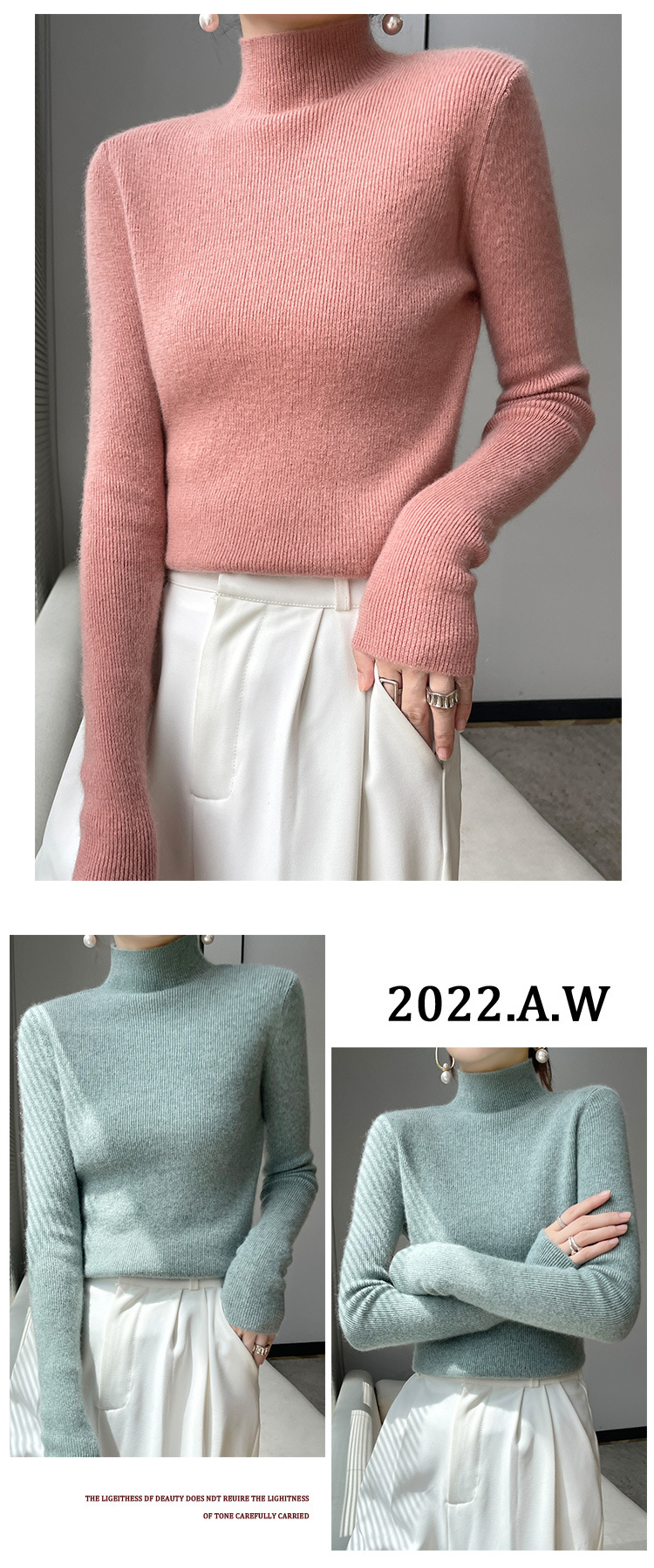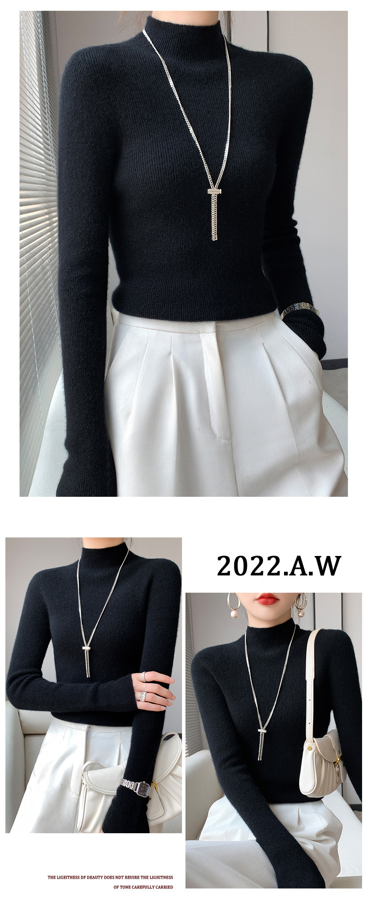한국판 25 가을 겨울 신상 하프 터틀넥 이너웨어 풀오버 긴팔 니트 여성 슬림핏 베이스 레이어 단색 스웨터