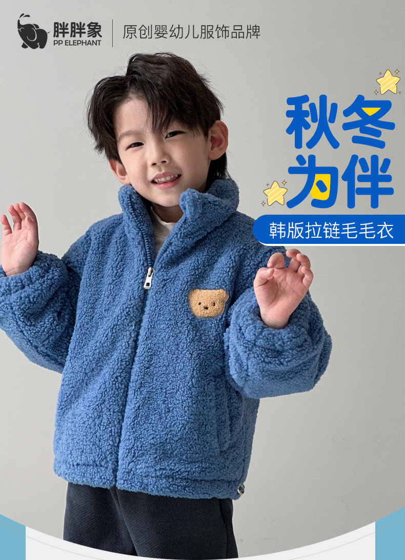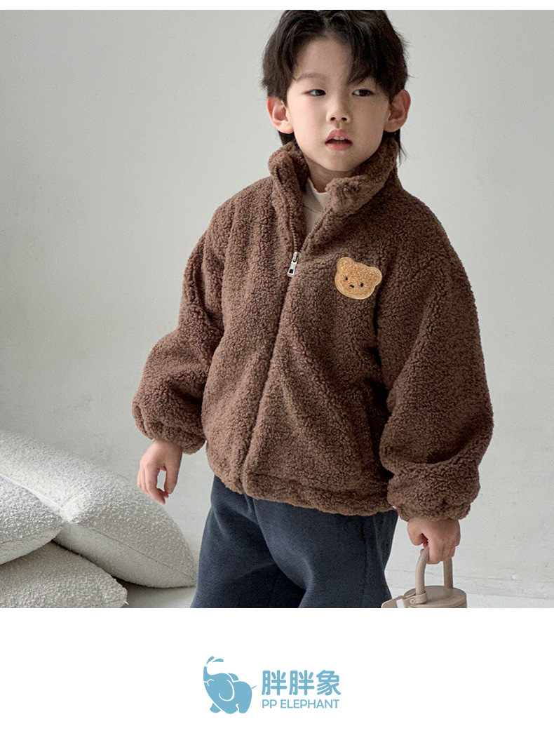 2023 새로운 작은 곰 모직 스웨터 어린이 가을과 겨울 기모 두꺼운 따뜻한 재킷 한국 소년 소녀 아동복스토어 가기