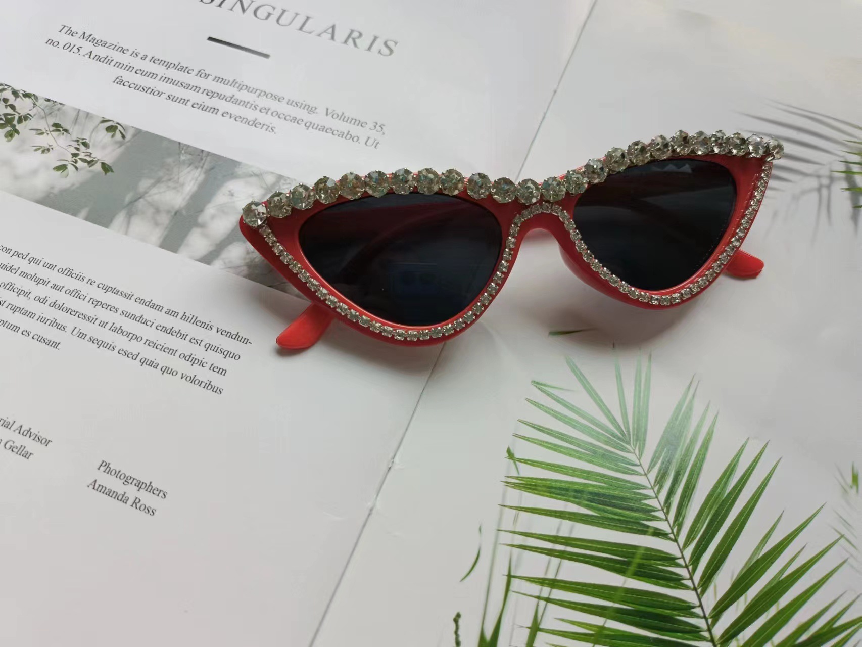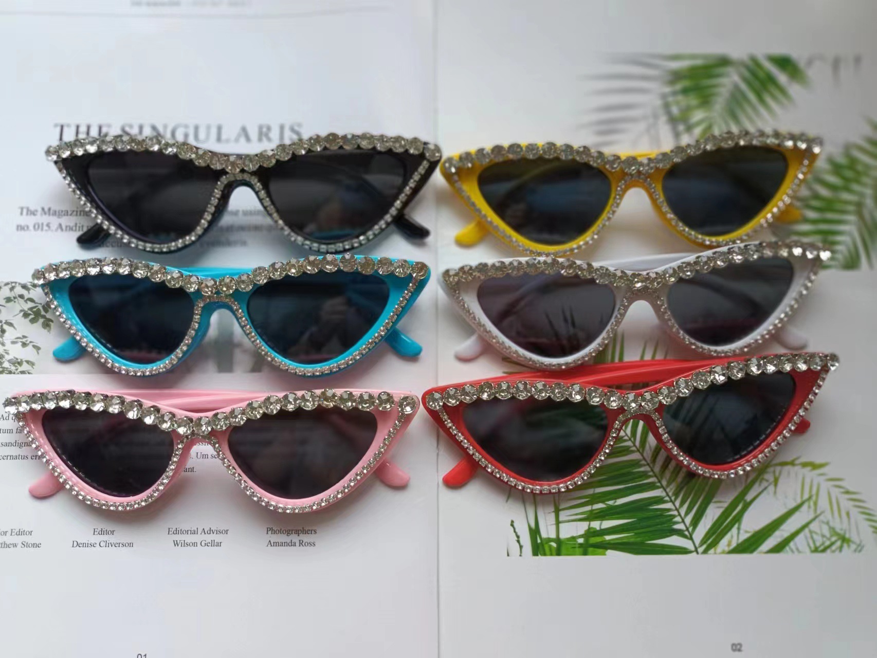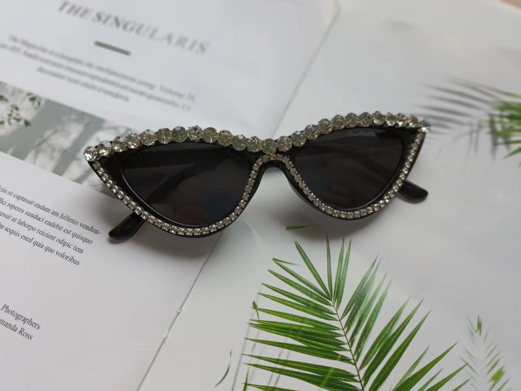 다이아몬드 고양이 눈 선글라스로 과장된 삼각형 안경 복고풍 패션 크로스 보더 고양이 눈 다이아몬드 선글라스 유럽과 미국 패션스토어 가기