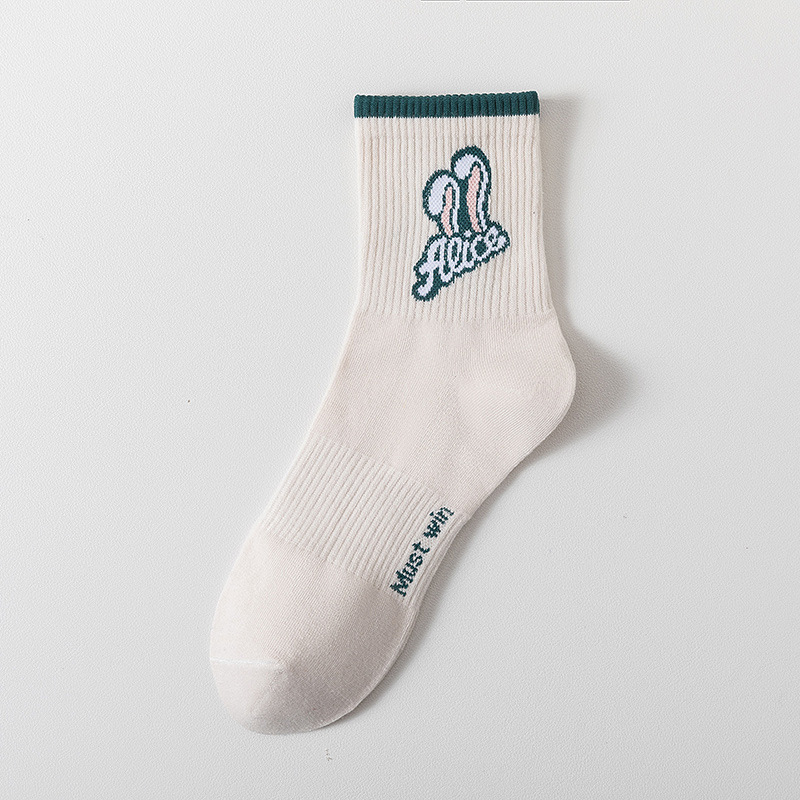 맞춤형 베밍니아 토끼 양말 만화 모든 경기 대학 스타일 땀 흡수 탈취제 단색 면 양말 여성용 유행 양말 봄과 가을스토어 가기