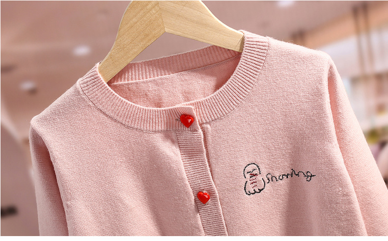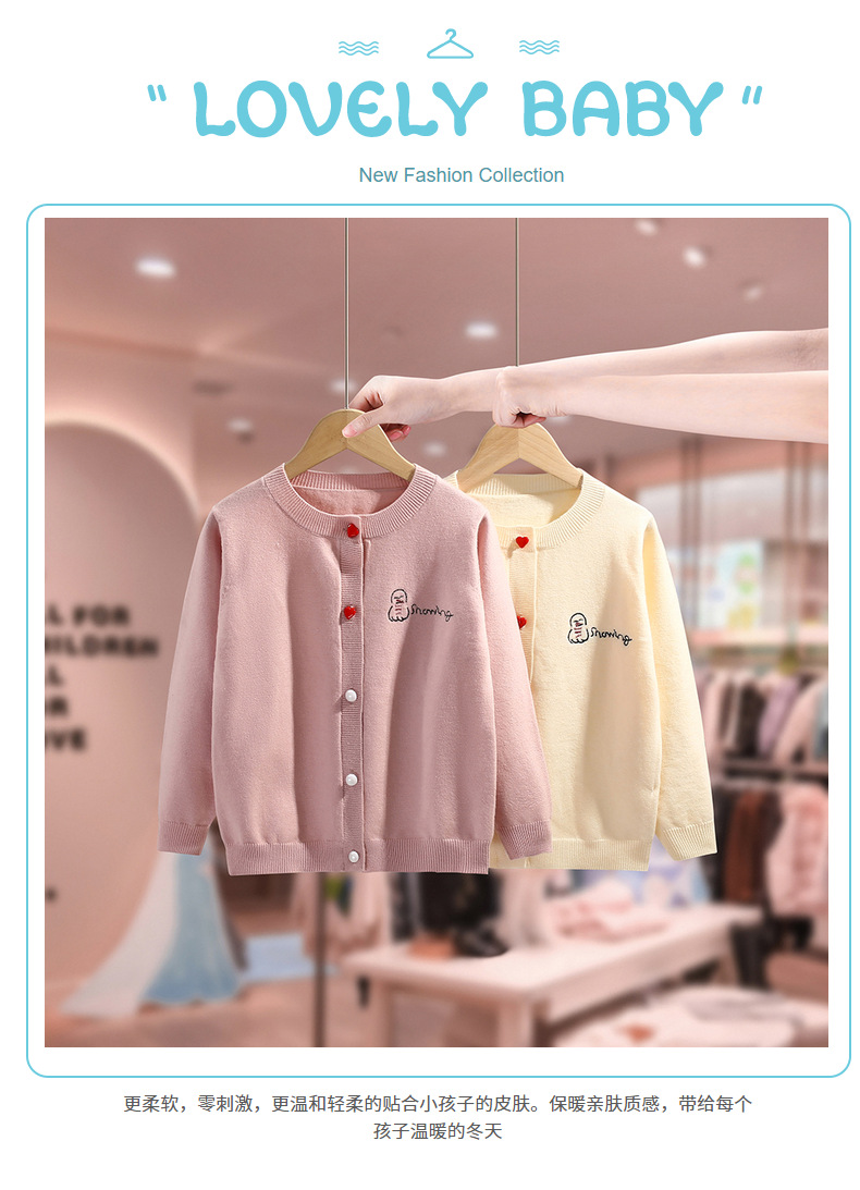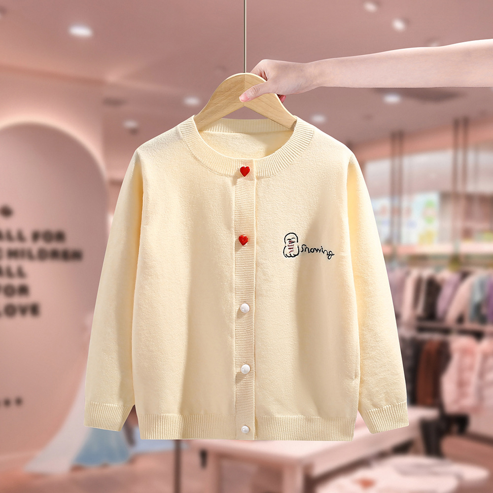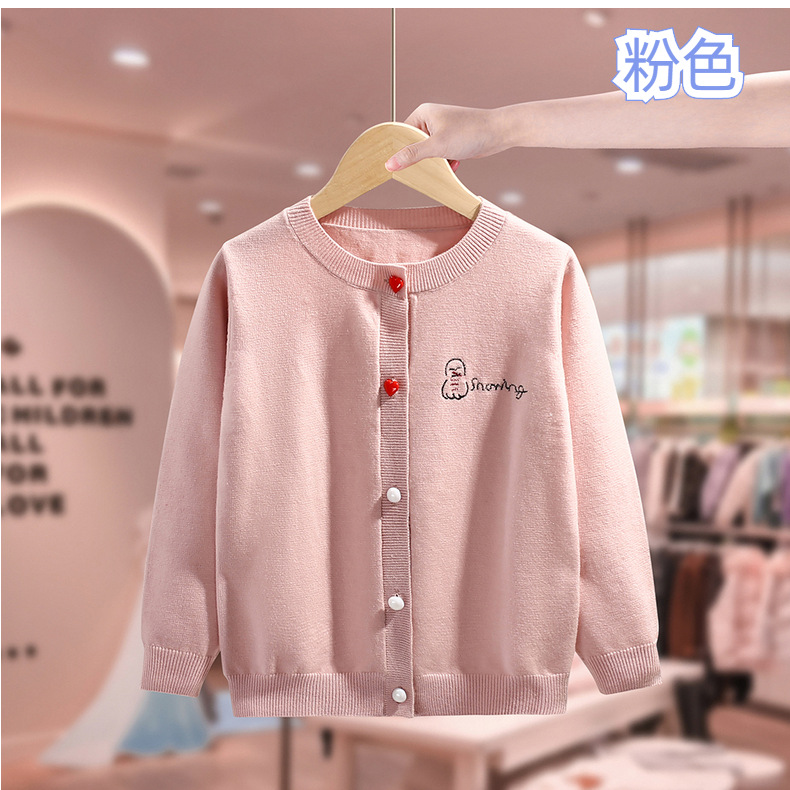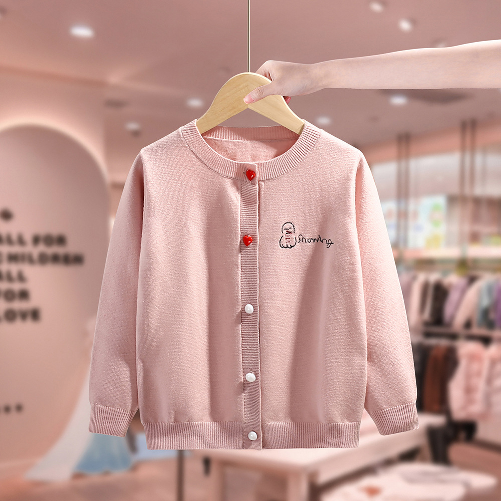 여아 스웨터 가디건 봄, 가을, 겨울 2025 신상 라운드 넥 싱글 브레스트 코트 여아 패션 니트 스웨터스토어 가기