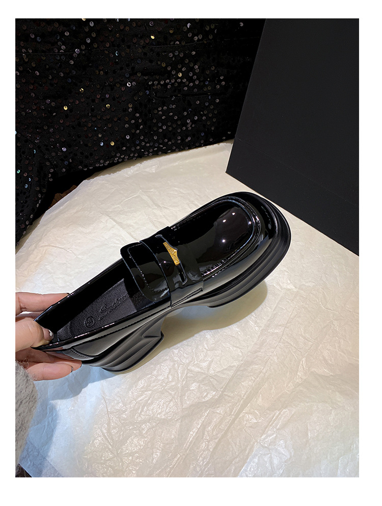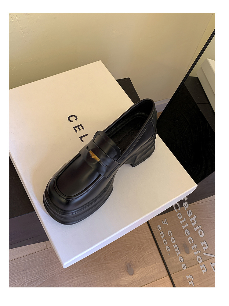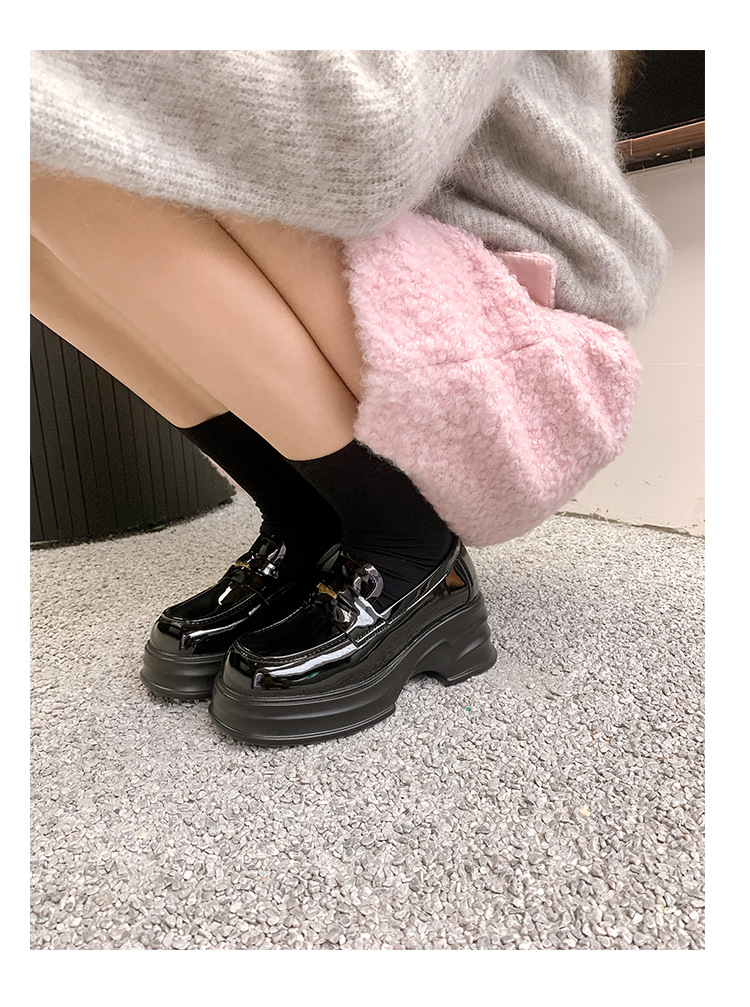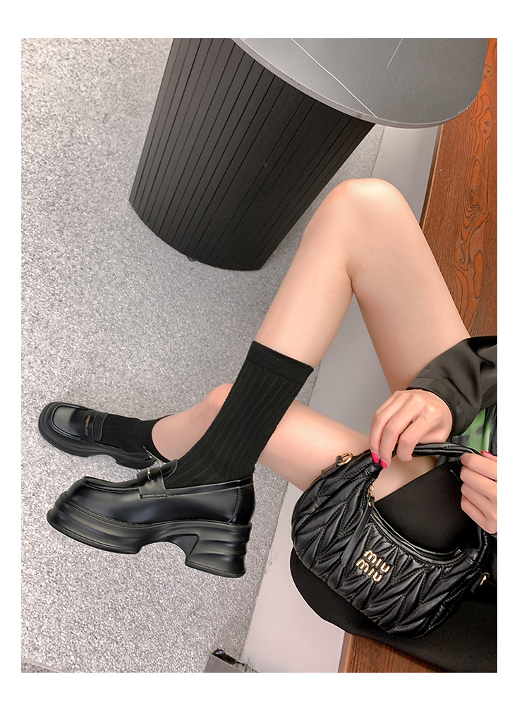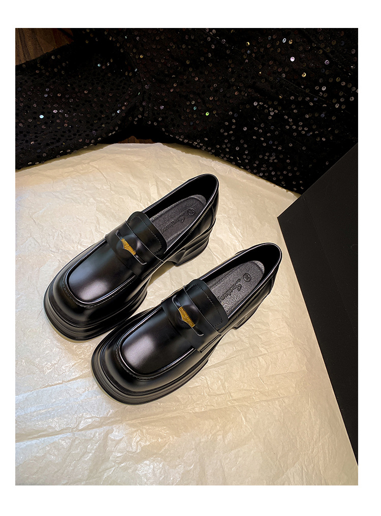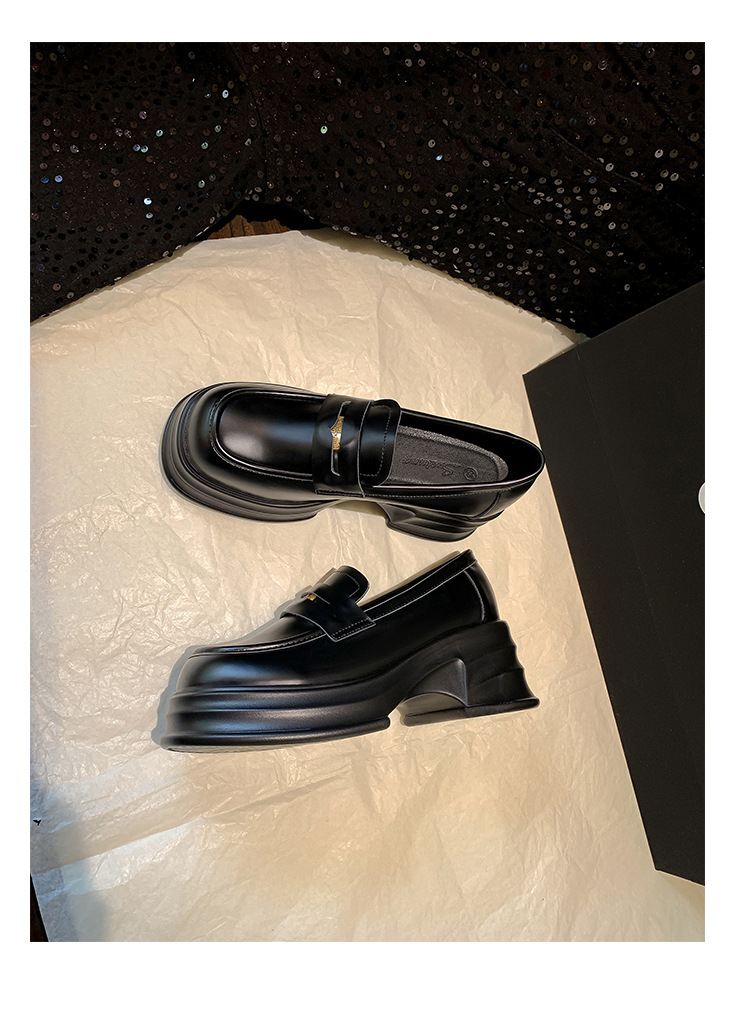 여성을위한 두꺼운 밑창 증가 금화 로퍼 2024 새로운 영국 복고풍 플랫폼 두꺼운 뒤꿈치 작은 가죽 신발 블랙 싱글 신발스토어 가기