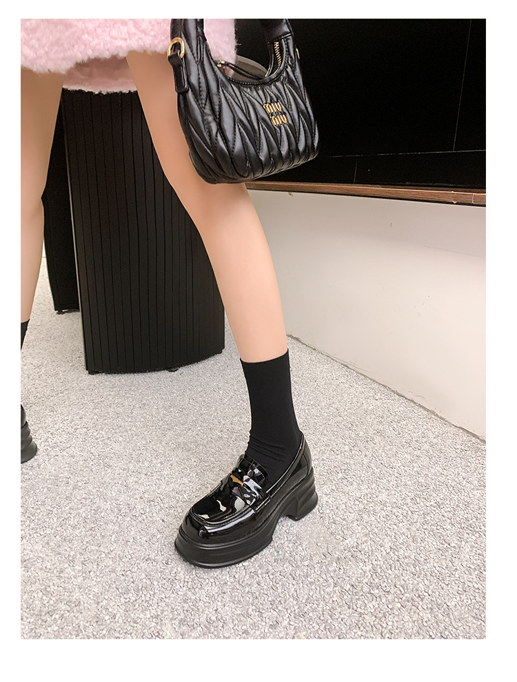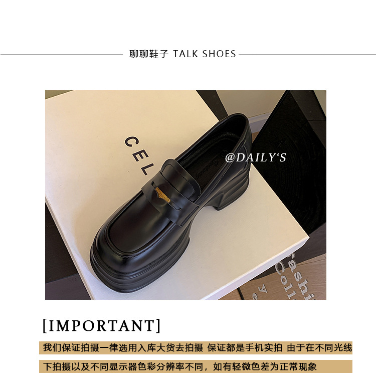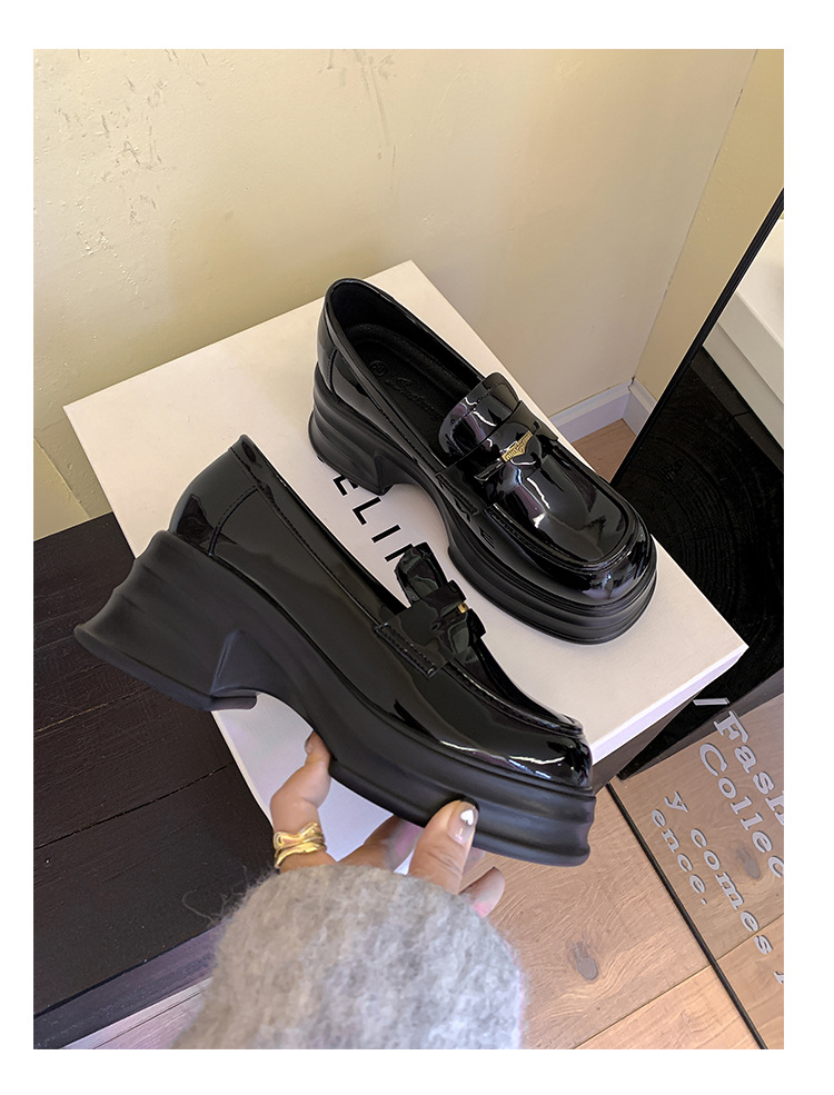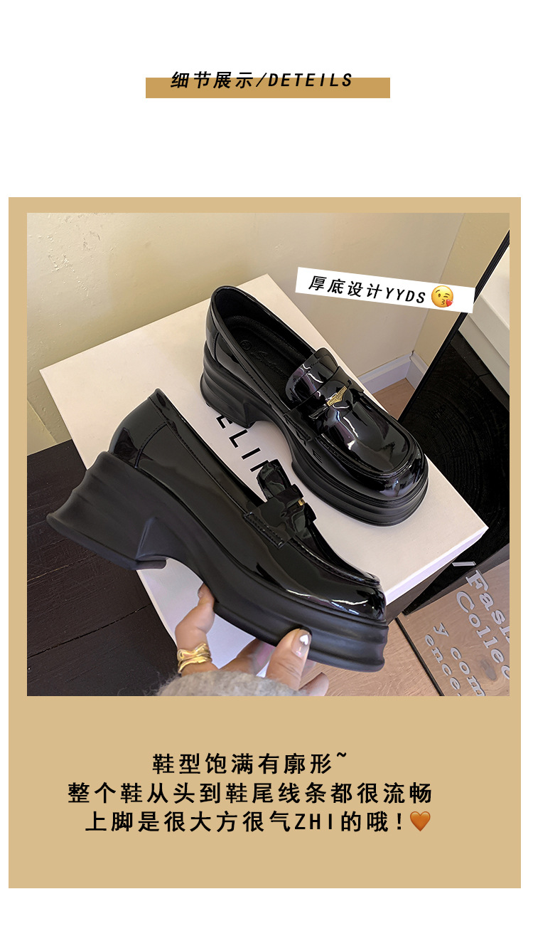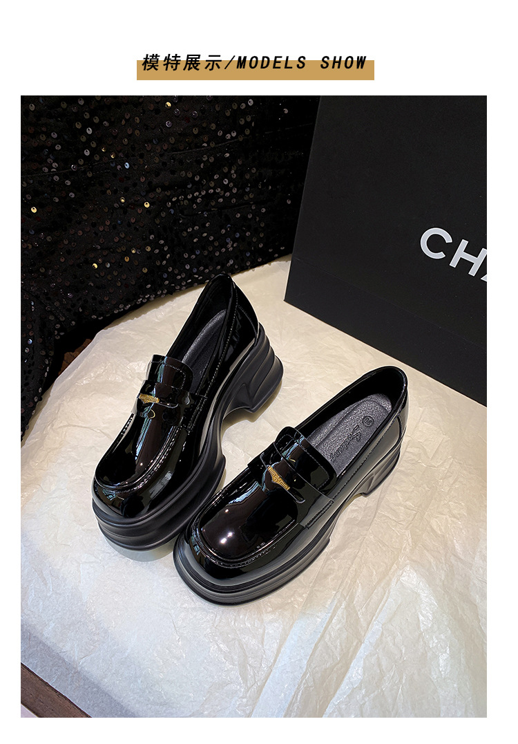 여성을위한 두꺼운 밑창 증가 금화 로퍼 2024 새로운 영국 복고풍 플랫폼 두꺼운 뒤꿈치 작은 가죽 신발 블랙 싱글 신발스토어 가기