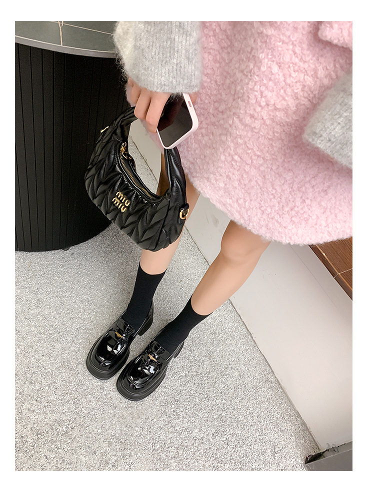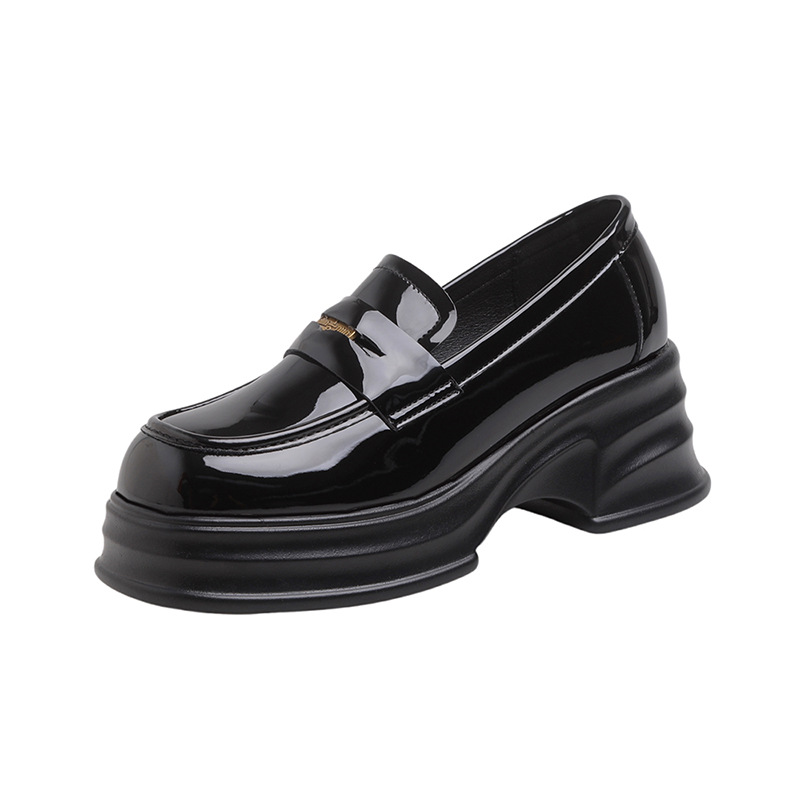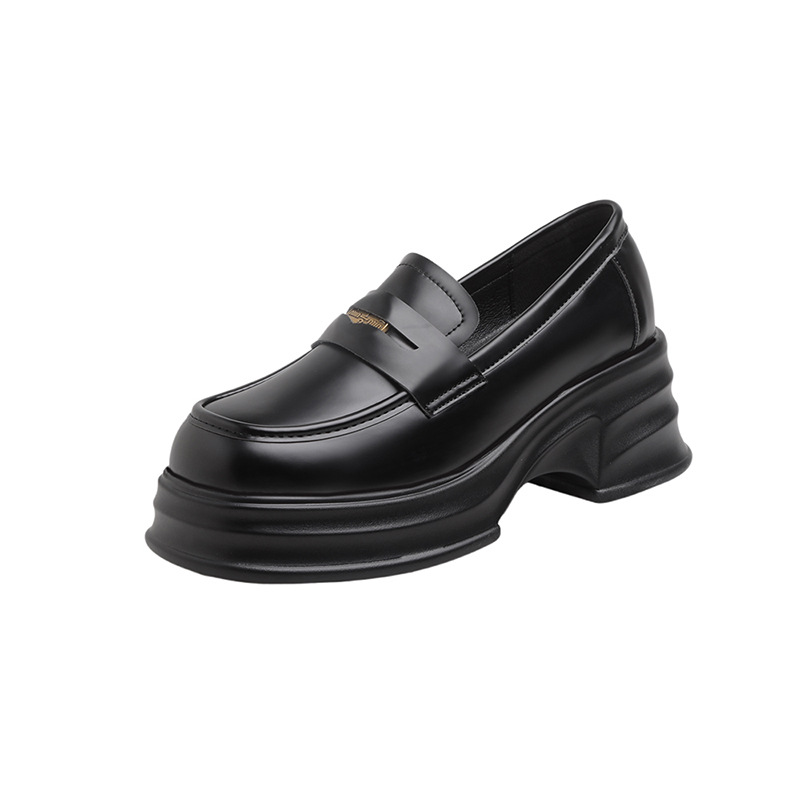 여성을위한 두꺼운 밑창 증가 금화 로퍼 2024 새로운 영국 복고풍 플랫폼 두꺼운 뒤꿈치 작은 가죽 신발 블랙 싱글 신발