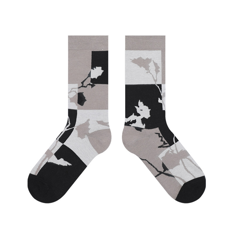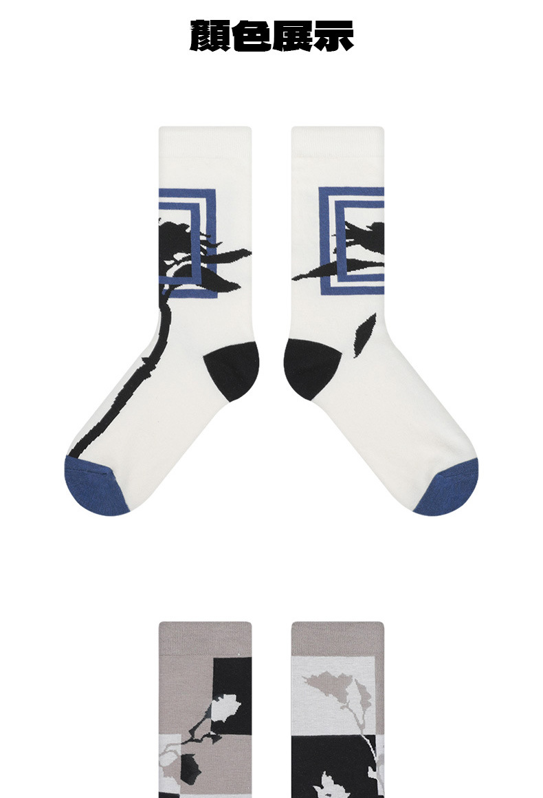 DAMAHOOV 가을 새로운 빈티지 플라워 디자인 센스 양말 여성의 원래 성격 트렌디 중간 길이 양말 면 양말