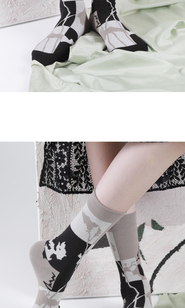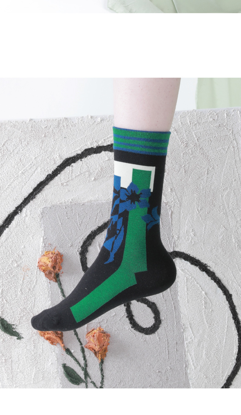 DAMAHOOV 가을 새로운 빈티지 플라워 디자인 센스 양말 여성의 원래 성격 트렌디 중간 길이 양말 면 양말스토어 가기