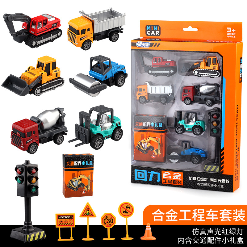 【商品名称】彩色合金回力工程车配声光红绿灯