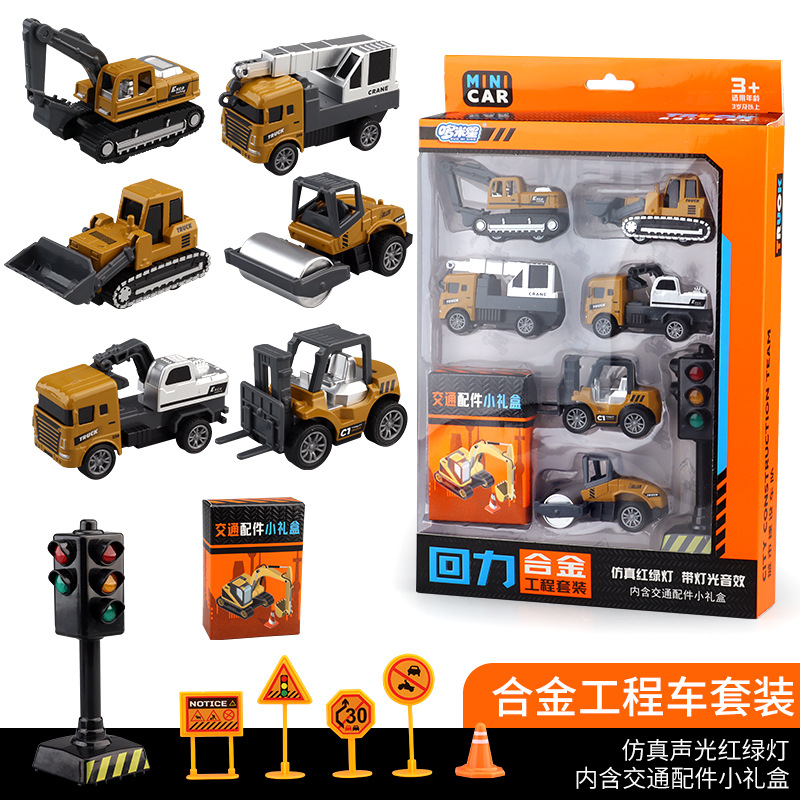 어린이 장난감 작은 선물 1:64 합금 Huili 소형 엔지니어링 굴삭기 함대 모델 자동차 신호등 장난감스토어 가기